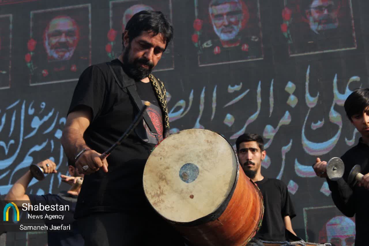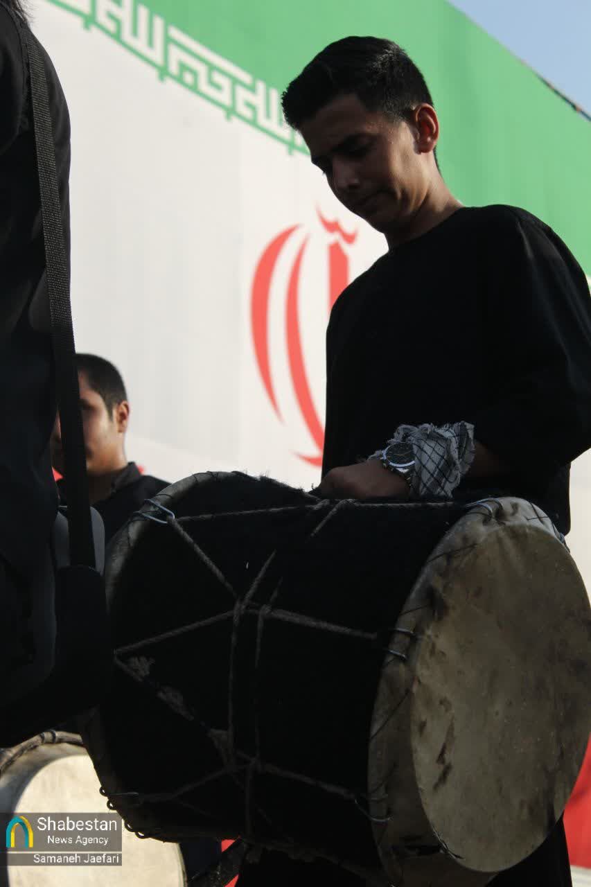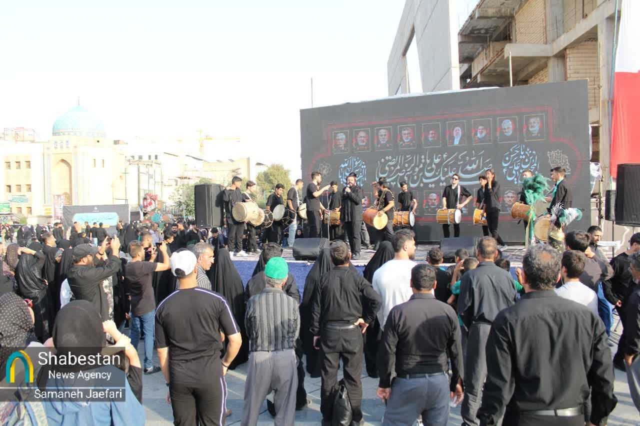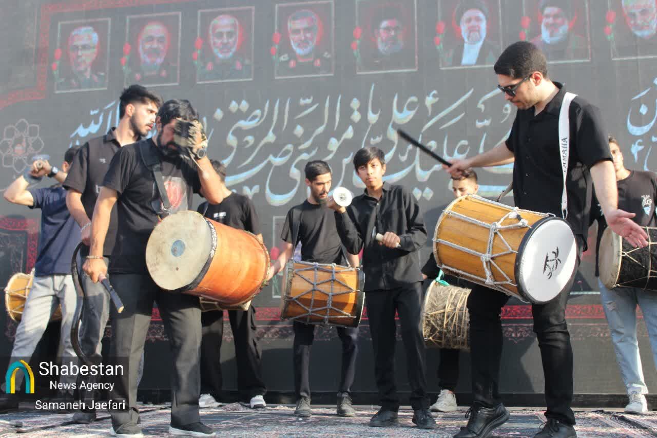 مراسم آیینی دمام زنی توسط گروه عزاداران شهرستان طبس عصر امروز جمعه ۳۱ مرداد ماه در عرصه میدان شهدا و در مسیر تشرف زائرین به حرم مطهر رضوی برگزار شد.