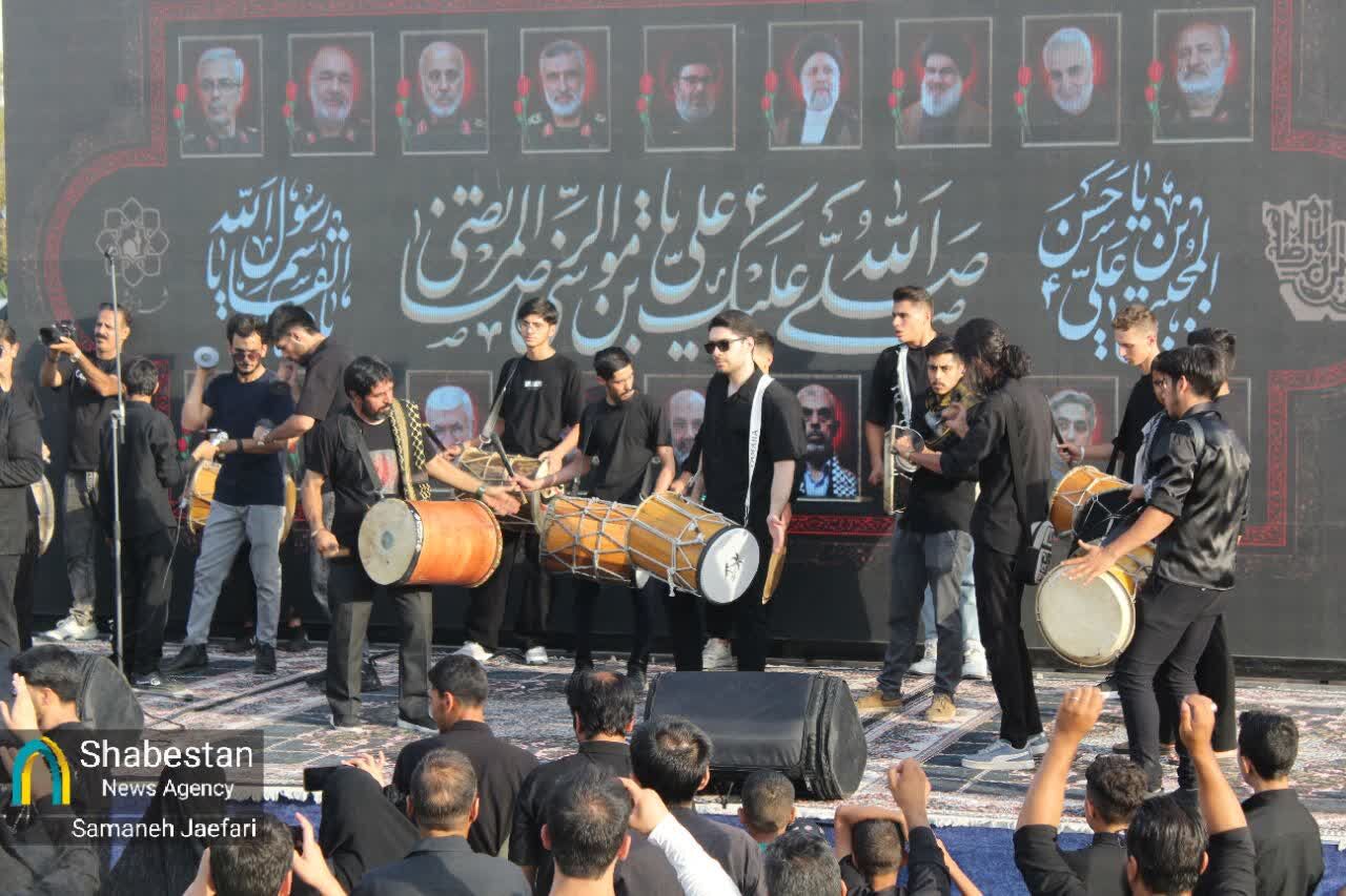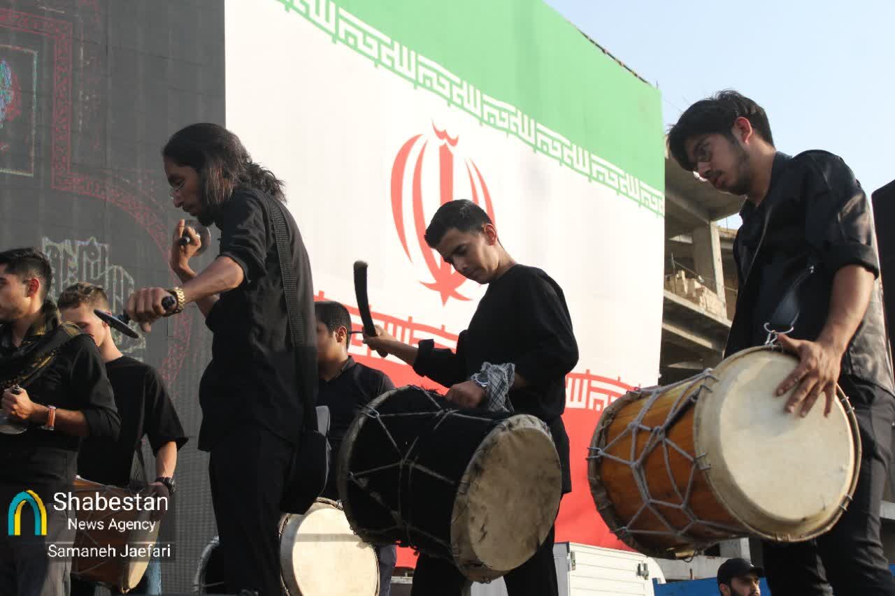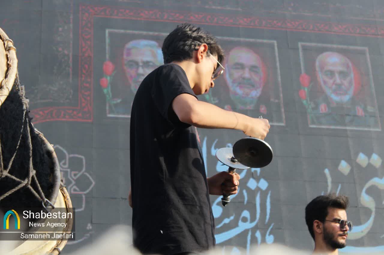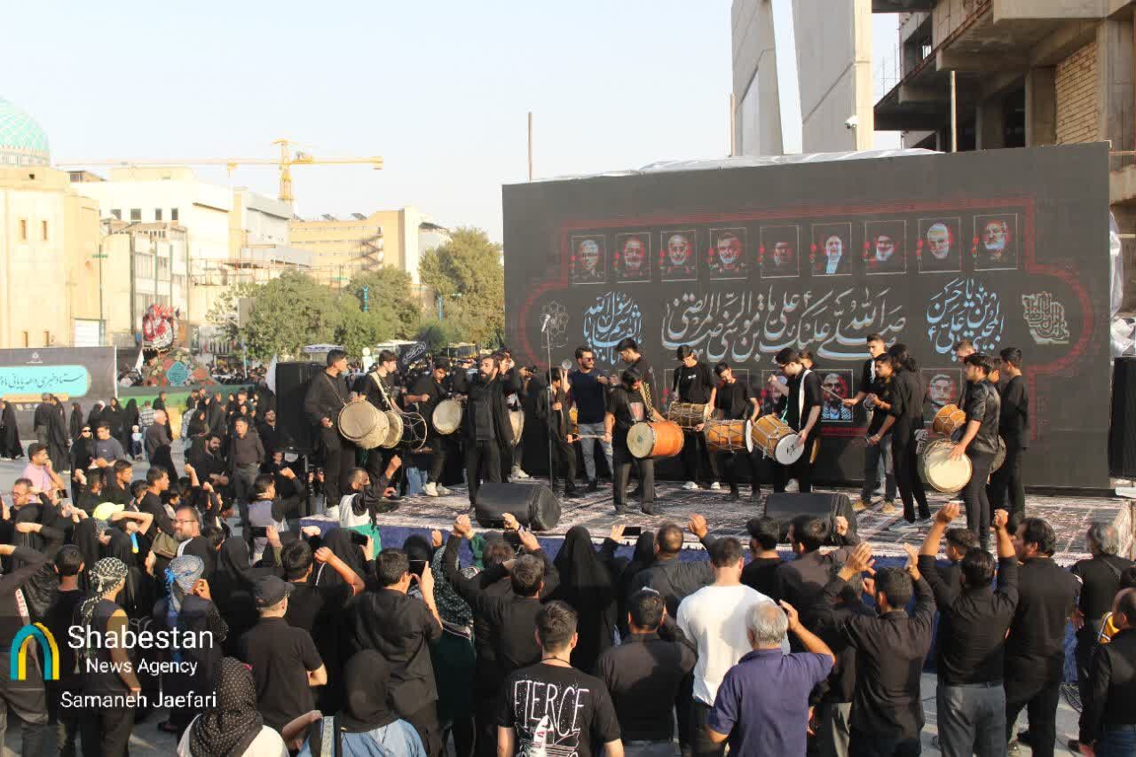مراسم آیینی دمام زنی توسط گروه عزاداران شهرستان طبس عصر امروز جمعه ۳۱ مرداد ماه در عرصه میدان شهدا و در مسیر تشرف زائرین به حرم مطهر رضوی برگزار شد.