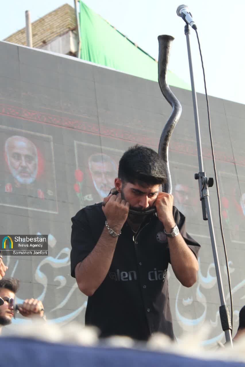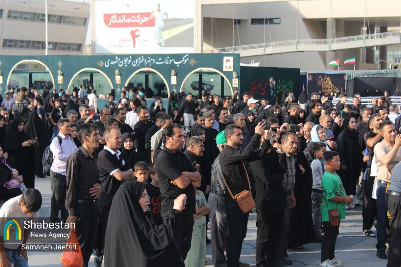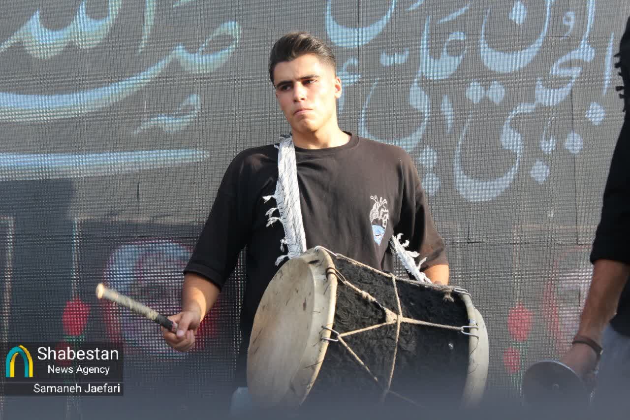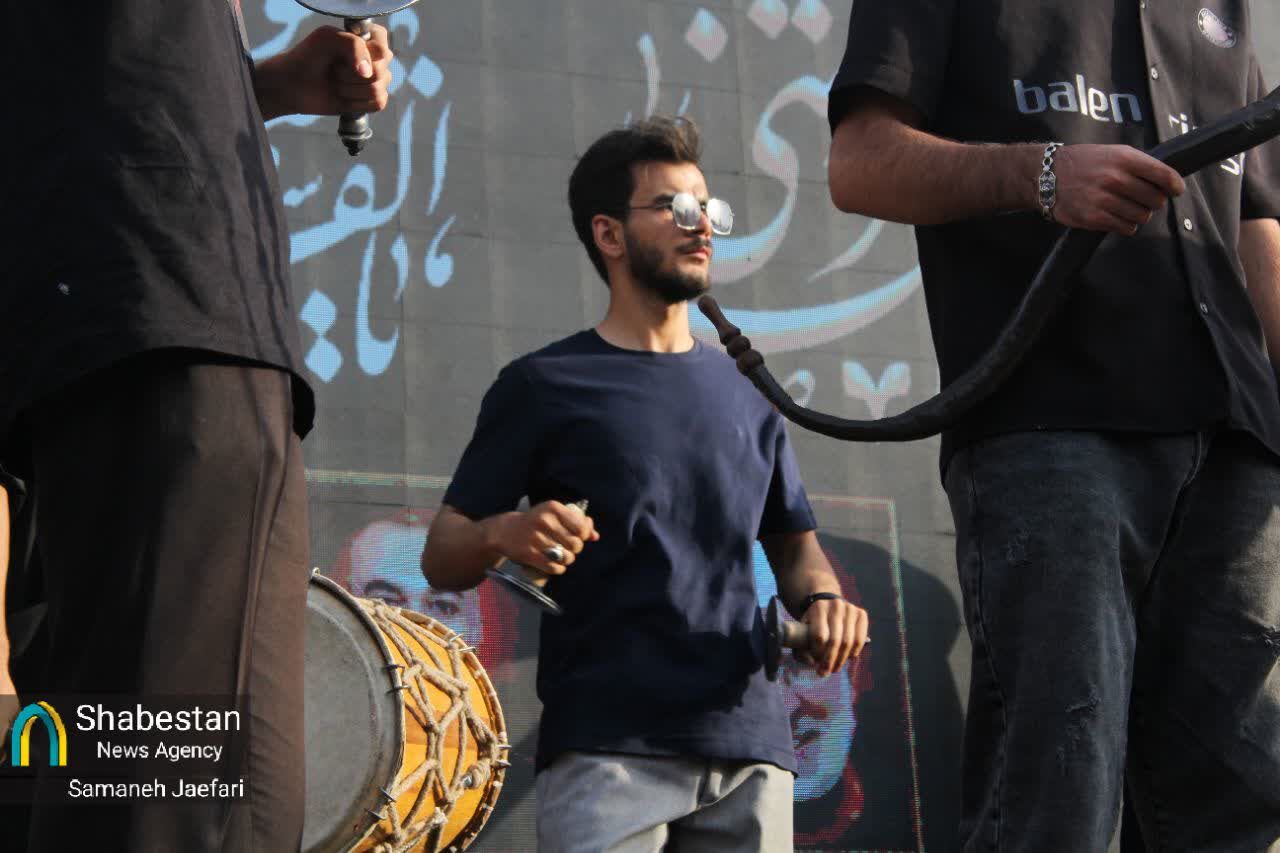 مراسم آیینی دمام زنی توسط گروه عزاداران شهرستان طبس عصر امروز جمعه ۳۱ مرداد ماه در عرصه میدان شهدا و در مسیر تشرف زائرین به حرم مطهر رضوی برگزار شد.