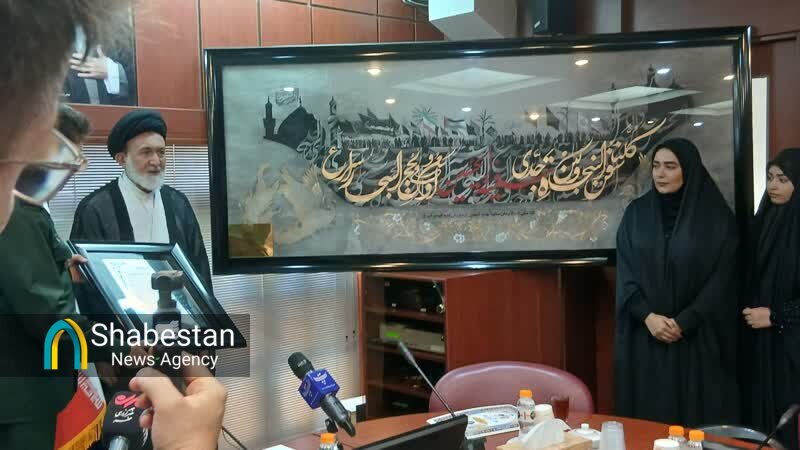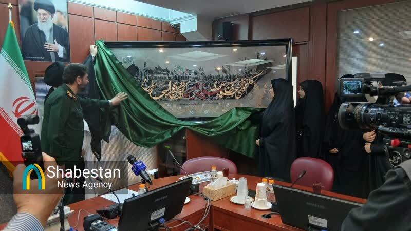 اثر هنری «سفینه الحسین(ع)»، هنر دست هفت تن از بانوان هنرمند بسیجی صبح امروز (شنبه، ۱ شهریورماه) در آستان مقدس حضرت عبدالعظیم حسنی(ع) و از سوی سپاه تهران بزرگ به این آستان مطهر اهدا شد.