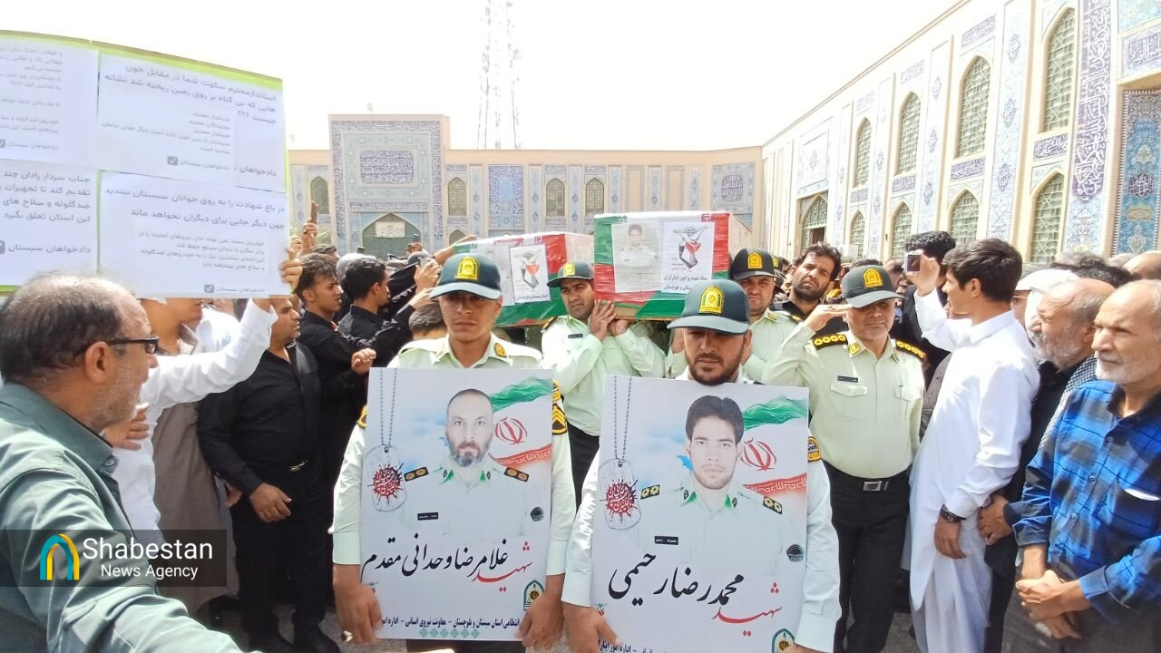 مراسم تشییع و خاکسپاری پیکر مطهر شهیدان غلامرضاوحدانی مقدم و محمدرضارحیمی از شهدای حادثه تروریستی ایرانشهر در زابل برگزار شد.