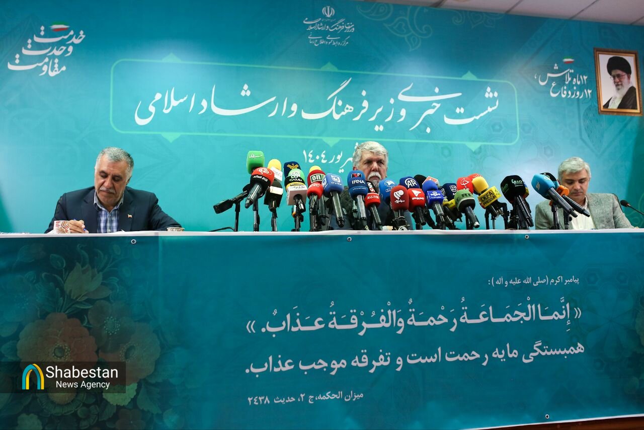 دومین نشست خبری سیدعباس صالحی، وزیر فرهنگ و ارشاد اسلامی در دولت چهاردهم همزمان با هفته دولت و با حضور نیکنام حسینیپور، مشاور وزیر و رئیس مرکز روابط عمومی وزارت فرهنگ و ارشاد اسلامی و اصحاب رسانه امروز سهشنبه ۴ شهریورماه ۱۴۰۴ برگزار شد.