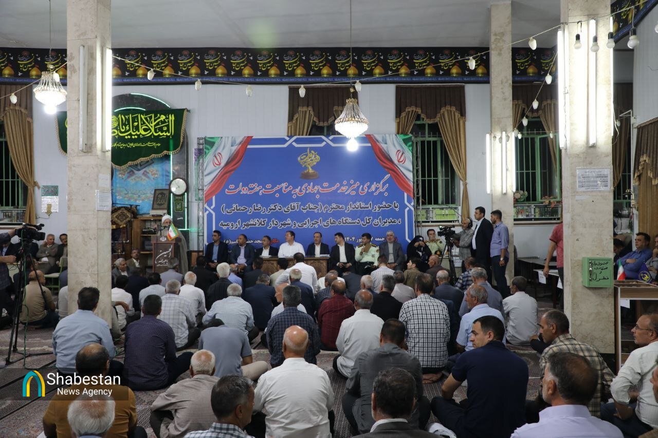 میز خدمت محلهمحور به مناسبت هفته دولت با حضور رضا رحمانی استاندار آذربایجانغربی و جمعی از مدیران و مسئولان استان و شهرستان ارومیه در مسجد حضرت قاسم (ع) برگزار شد. این میز خدمت محلهمحور در راستای تقویت ارتباط چهرهبهچهره مردم و مسئولان، ارتقای اعتماد عمومی و ارائه خدمات کارآمدتر برگزار میشود.