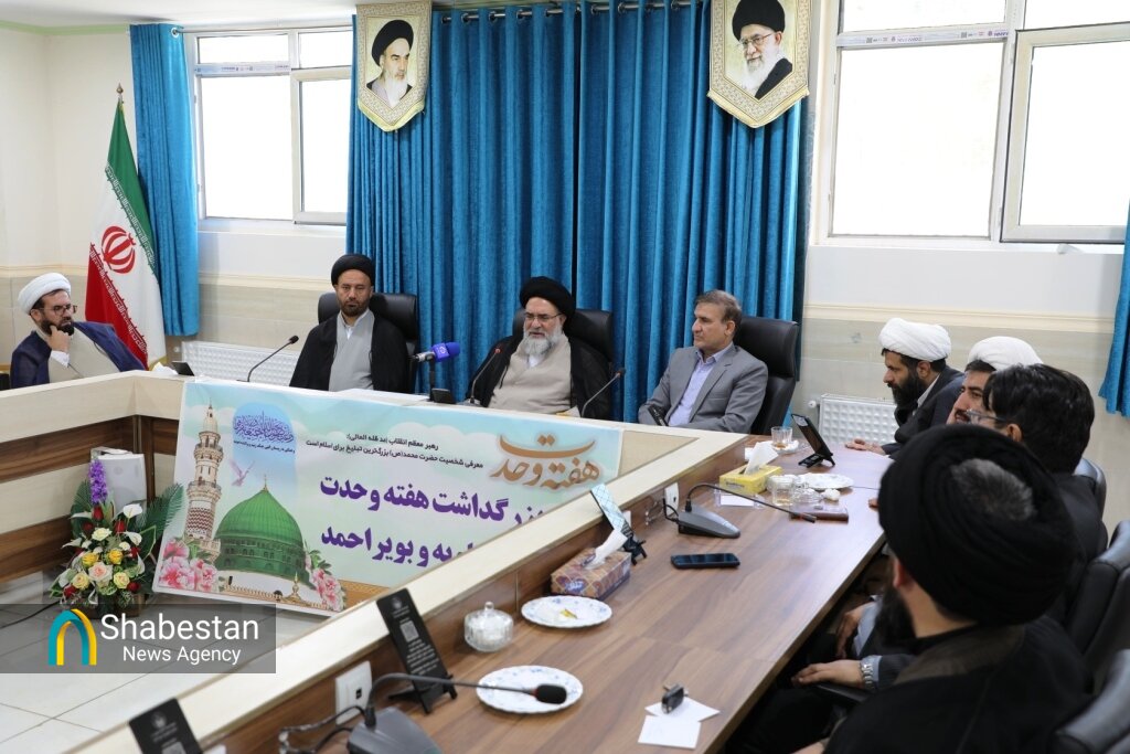 نشست ستاد استانی بزرگداشت هفته وحدت به مناسبت هزار و پانصدمین سالروز ولادت پیامبر رحمت حضرت محمد مصطفی (ص) با حضور نماینده ولی فقیه در استان کهگیلویه و بویراحمد، رئیس شورای هماهنگی تبلیغات اسلامی استان، اعضای ستاد و هیئت امنای ستاد مردمی دیه استان در دفتر نماینده ولی فقیه برگزار و برنامههای بزرگداشت هفته وحدت همراه با راهکارهای آزادسازی زندانیان جرائم غیرعمد در استان کهگیلویه و بویراحمد، مورد بررسی و تصویب قرار گرفت.