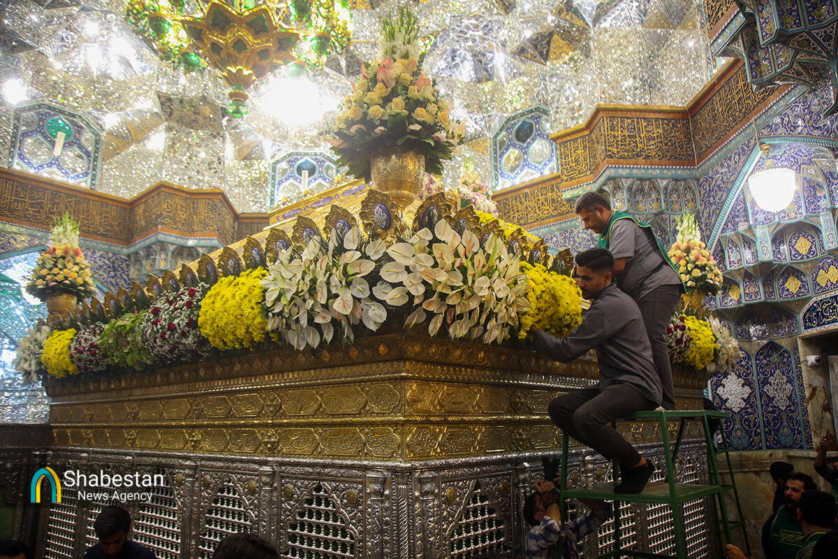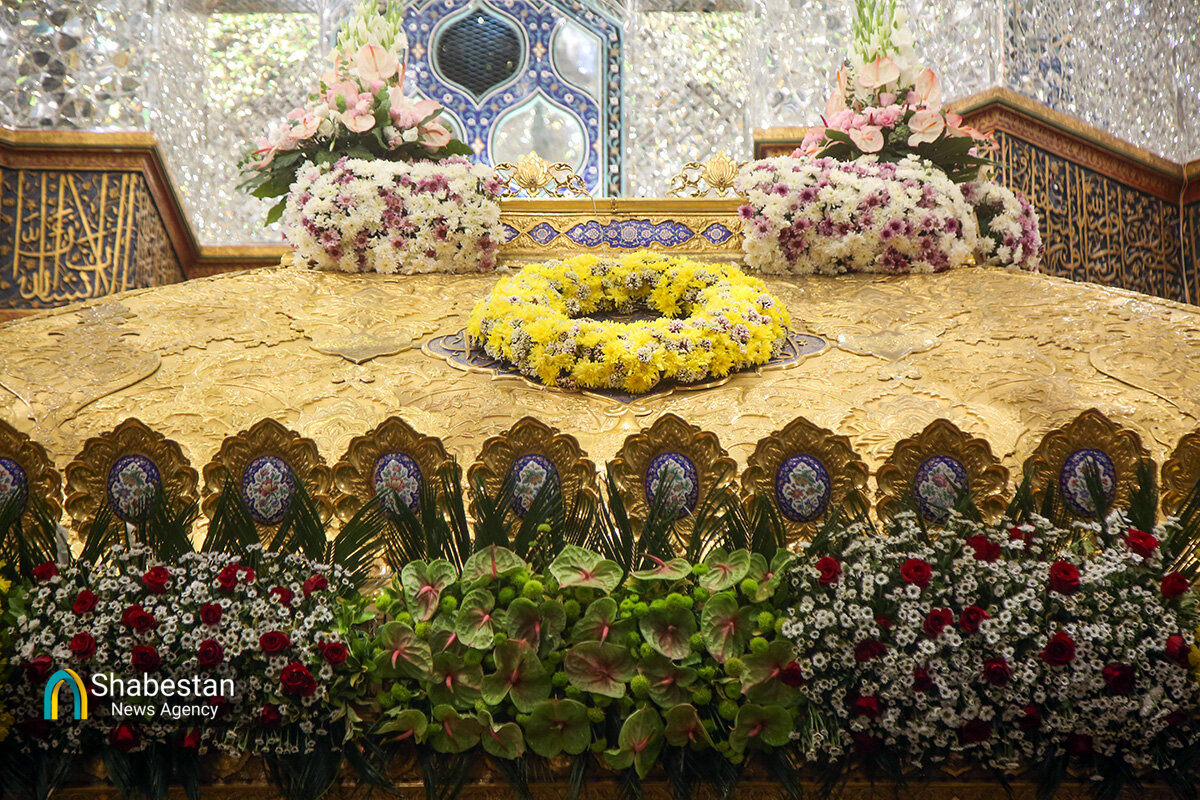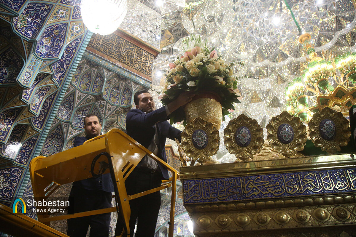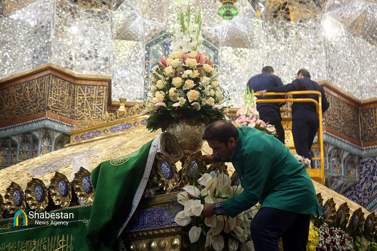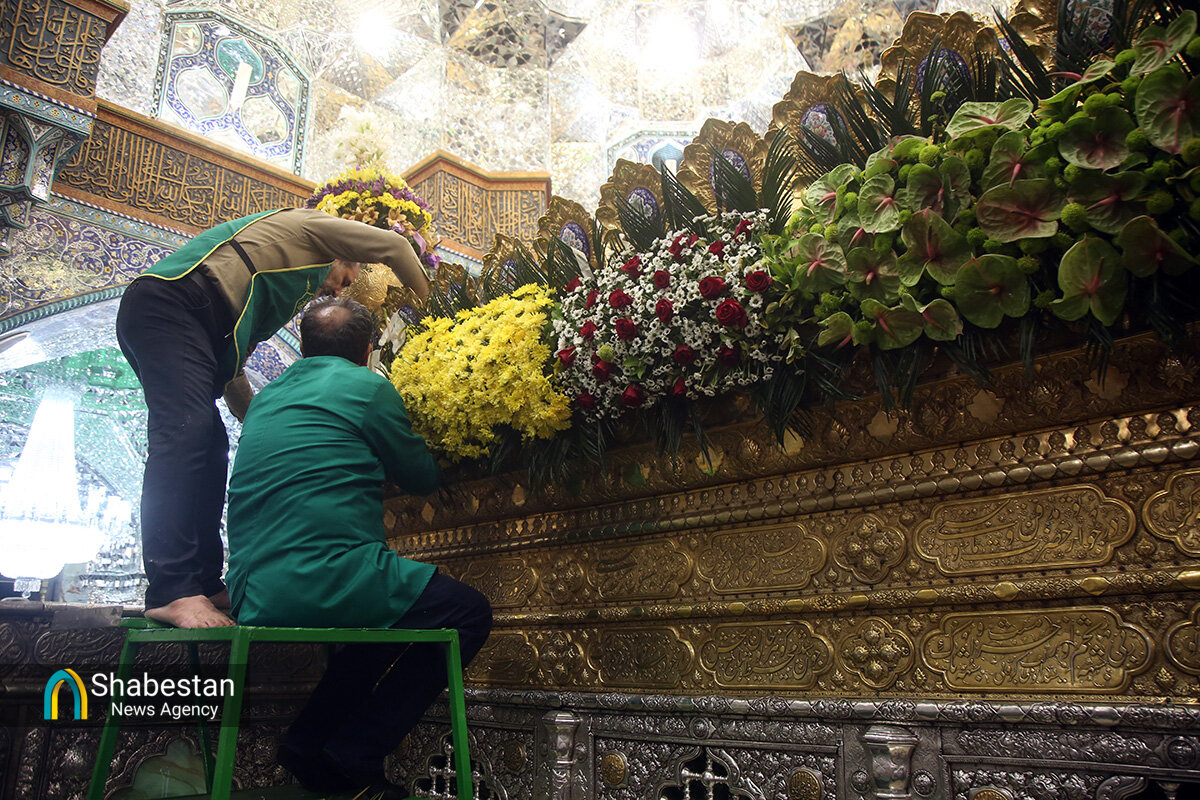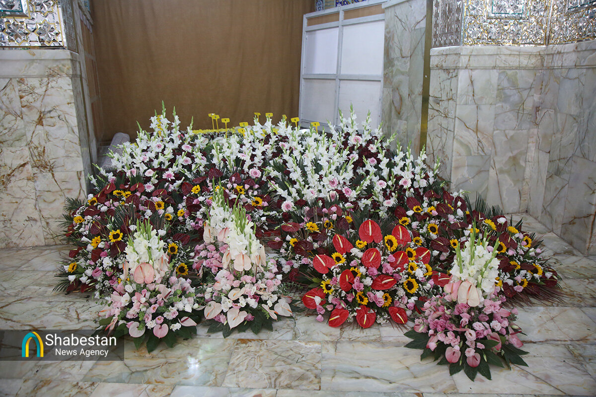 ضریح مطهر حرم حضرت فاطمه معصومه سلام الله علیها به مناسبت ۲۳ ربیع الاول سالروز ورود ایشان به شهر مقدس قم با هزاران شاخه گل طبیعی گل‌آرایی شد.