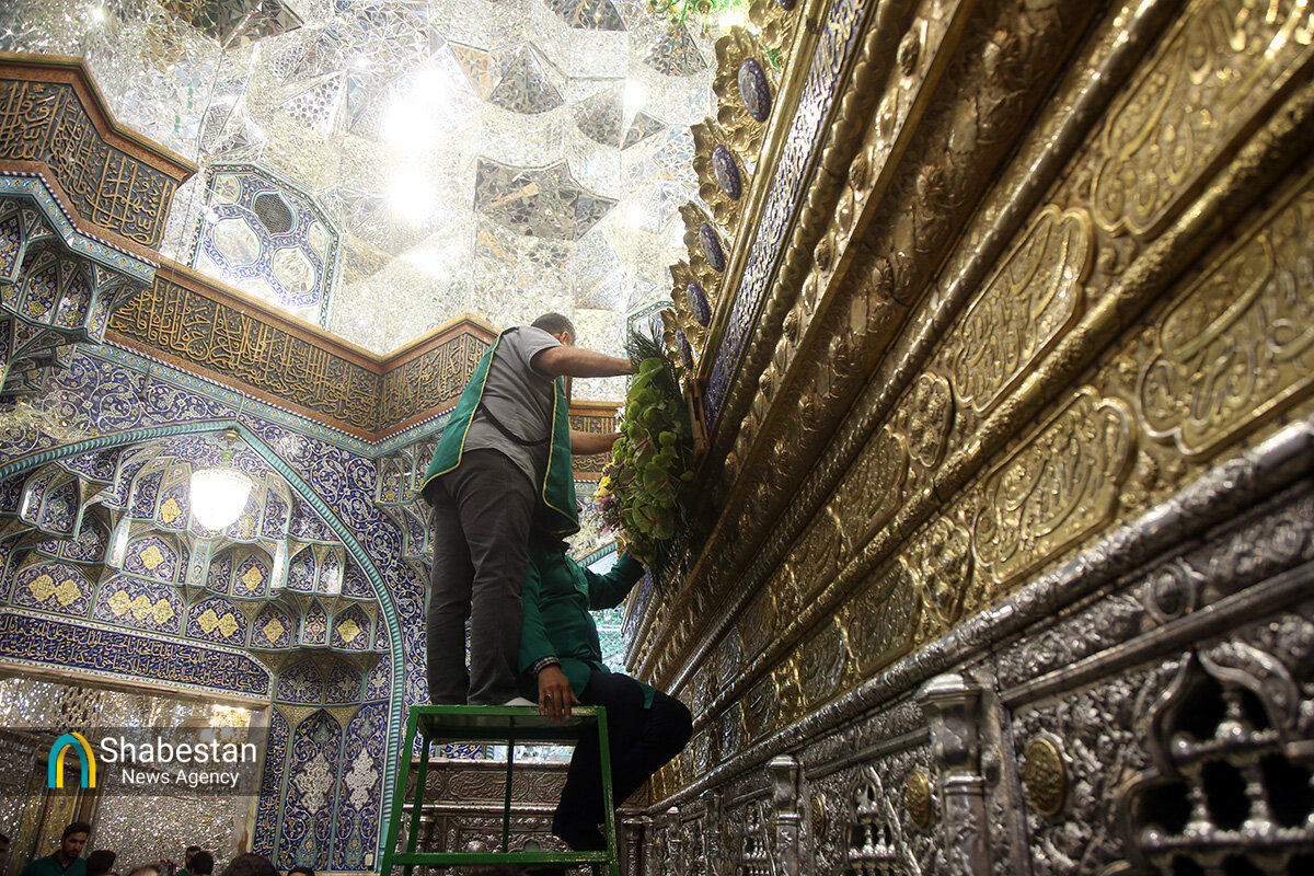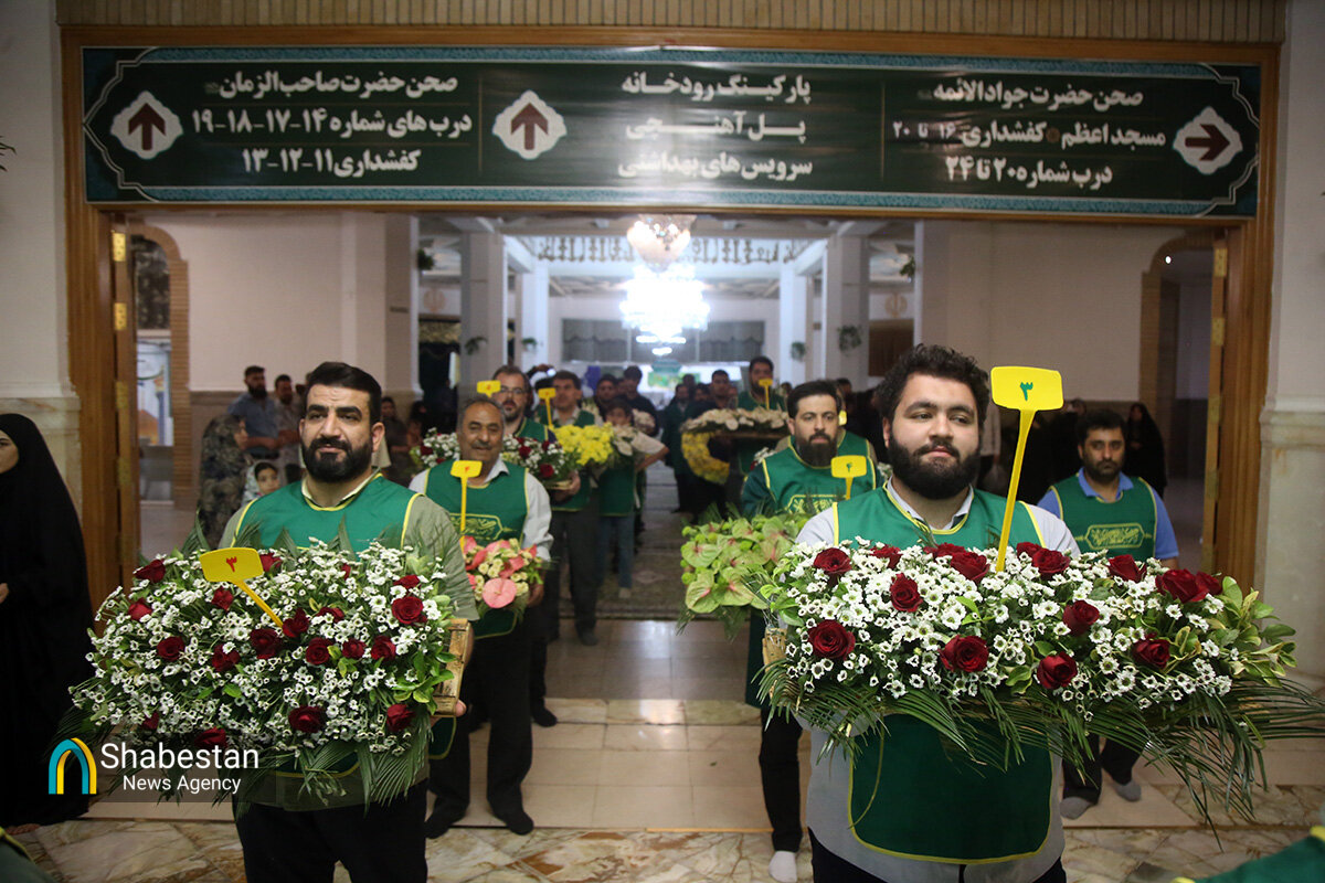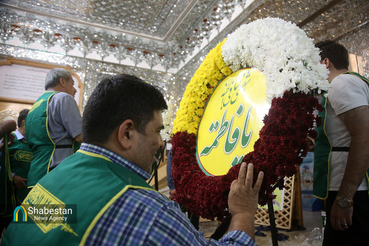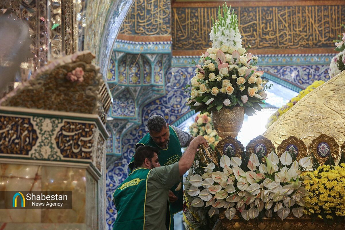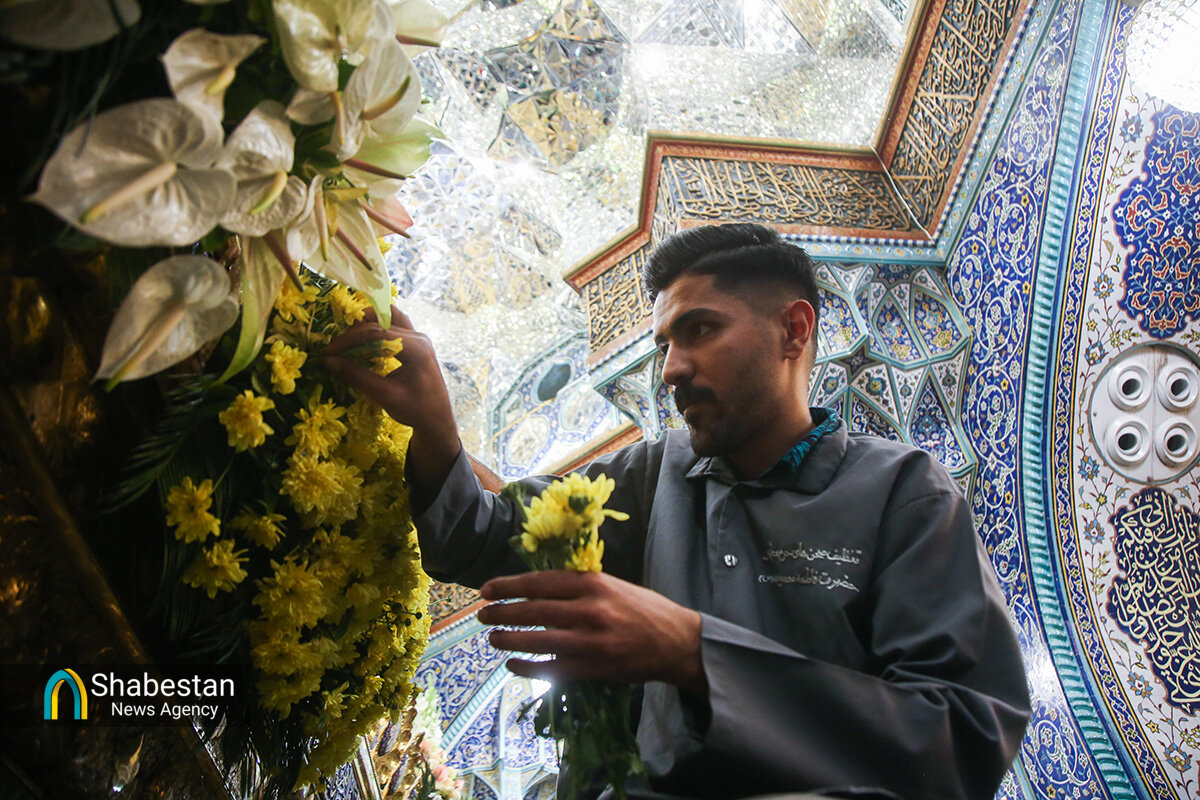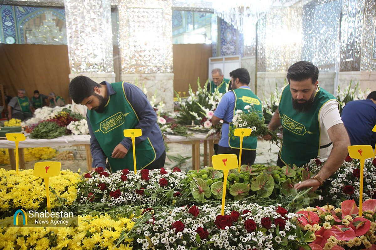 ضریح مطهر حرم حضرت فاطمه معصومه سلام الله علیها به مناسبت ۲۳ ربیع الاول سالروز ورود ایشان به شهر مقدس قم با هزاران شاخه گل طبیعی گل‌آرایی شد.