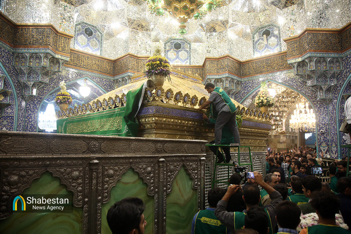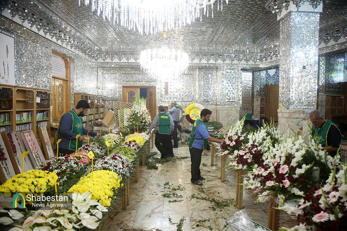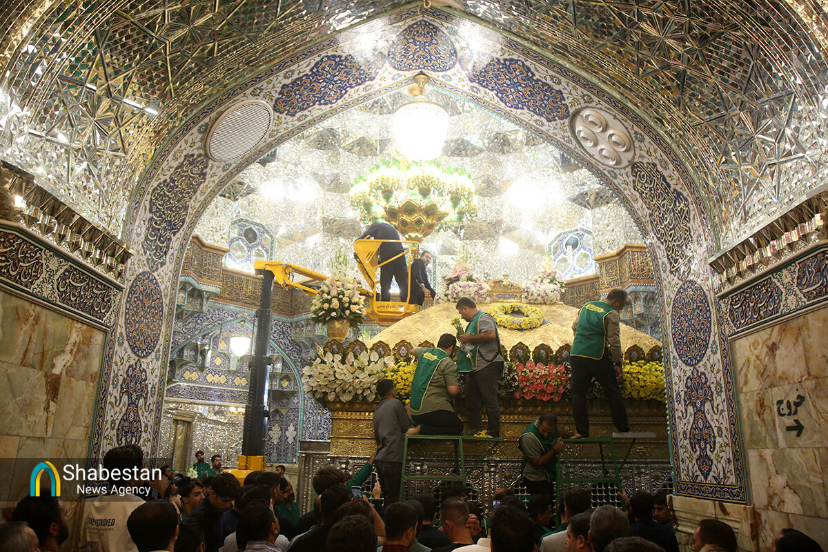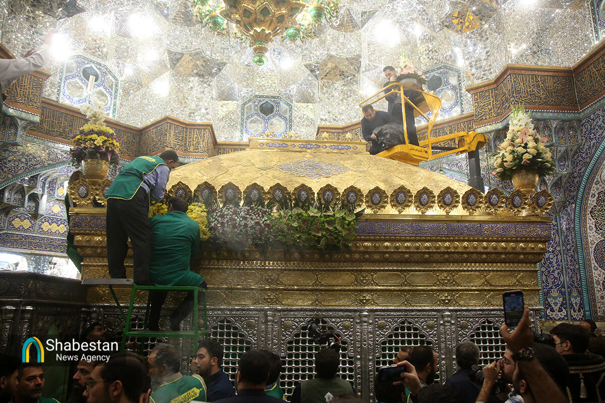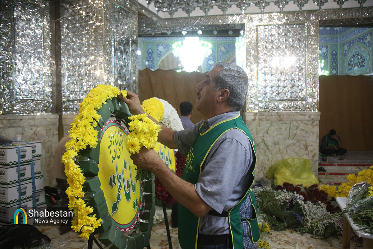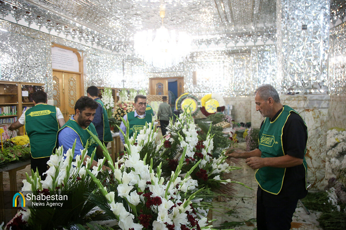 ضریح مطهر حرم حضرت فاطمه معصومه سلام الله علیها به مناسبت ۲۳ ربیع الاول سالروز ورود ایشان به شهر مقدس قم با هزاران شاخه گل طبیعی گل‌آرایی شد.
