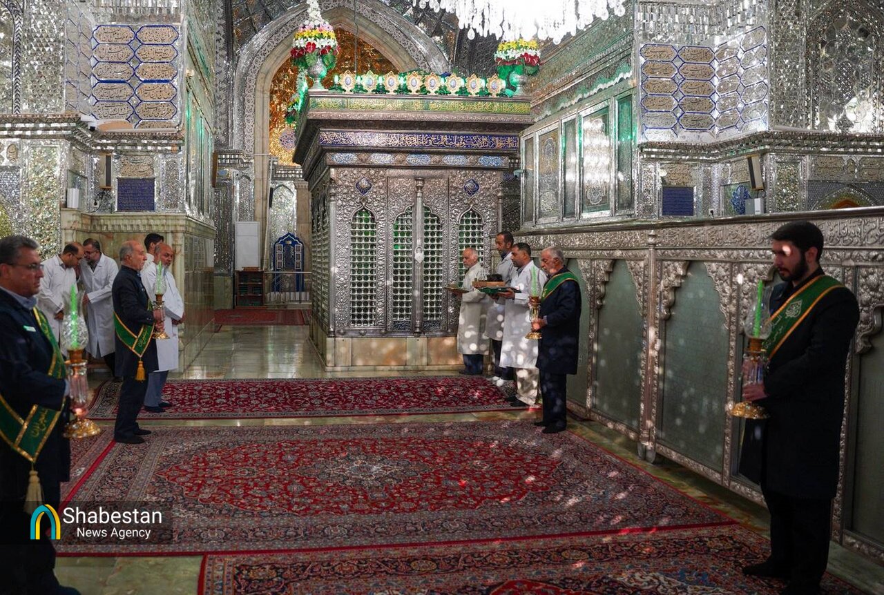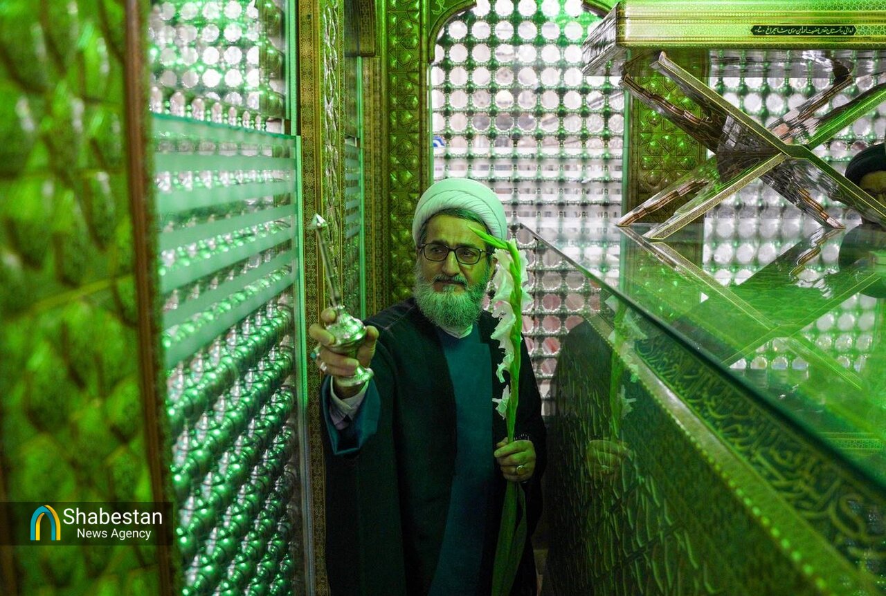 مضجع شریف حضرت شاهچراغ(ع) در آیینی معنوی و با حضور میهمانان اجلاسیه اعتاب مقدس، غبارروبی و عطرافشانی شد تا بار دیگر جلوه‌ای از ارادت به این حرم نورانی رقم بخورد.