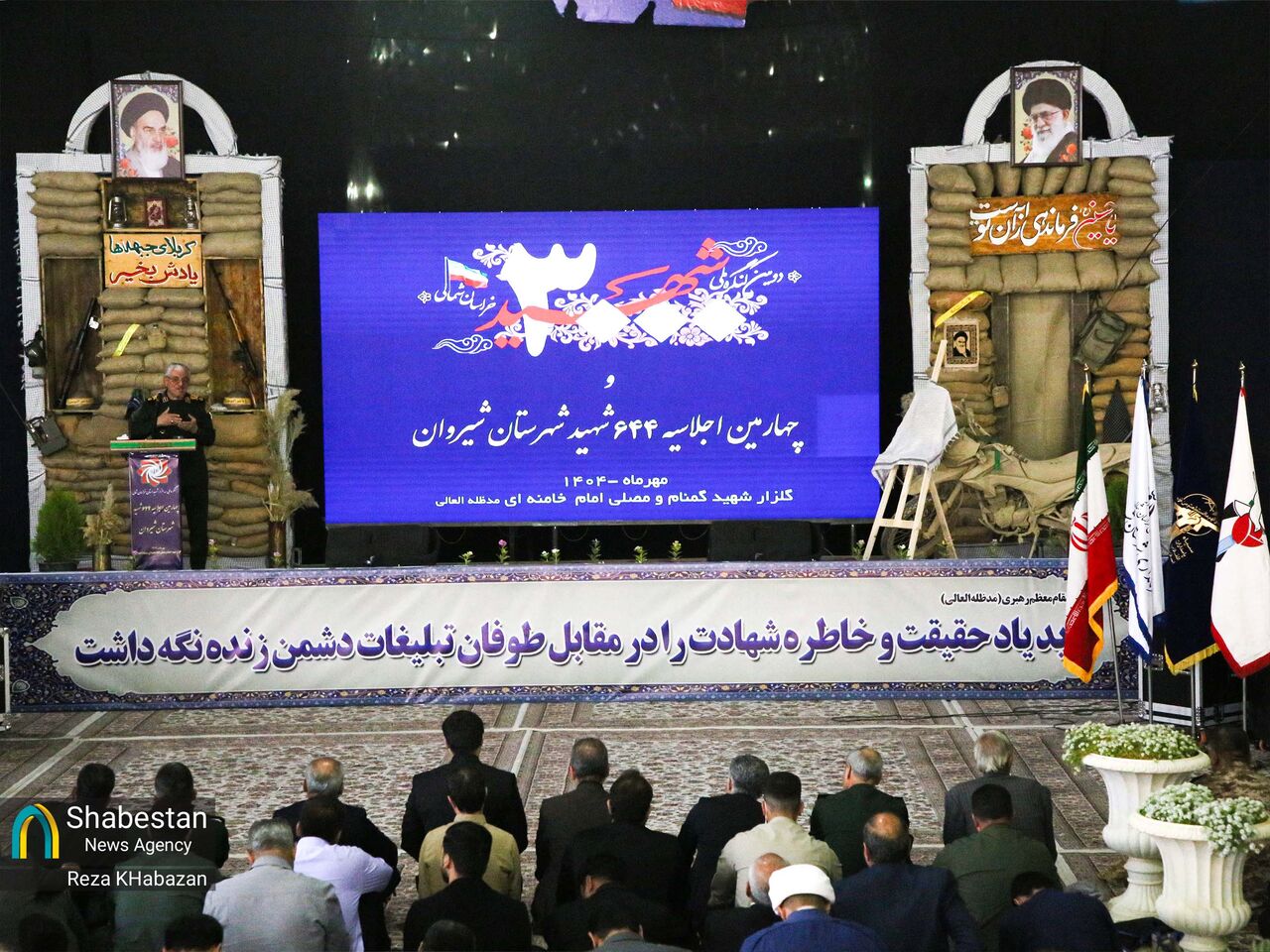 اجلاسیه ۶۴۴ شهید شهرستان شیروان در مصلی امام خامنه ای این شهر با حضور شهدا، اقشار مردم و مسئولین با سخنرانی سردار طلایی نیک، معاون توسعه مدیریت و برنامه ریزی راهبردی وزارت دفاع و پشتیبانی نیروهای مسلح ظهر امروز پنج شنبه ۱۷ مهرماه برگزار شد.