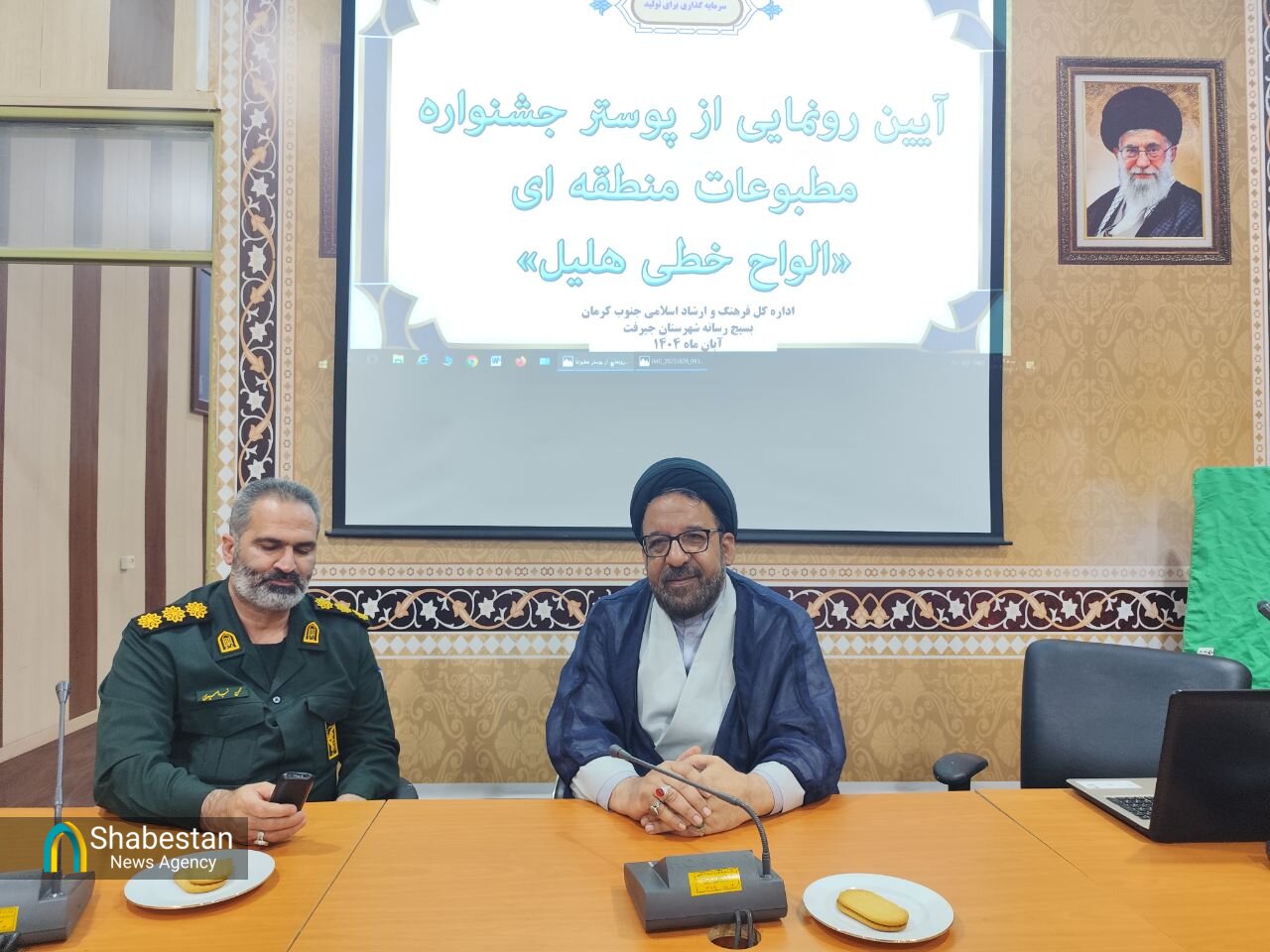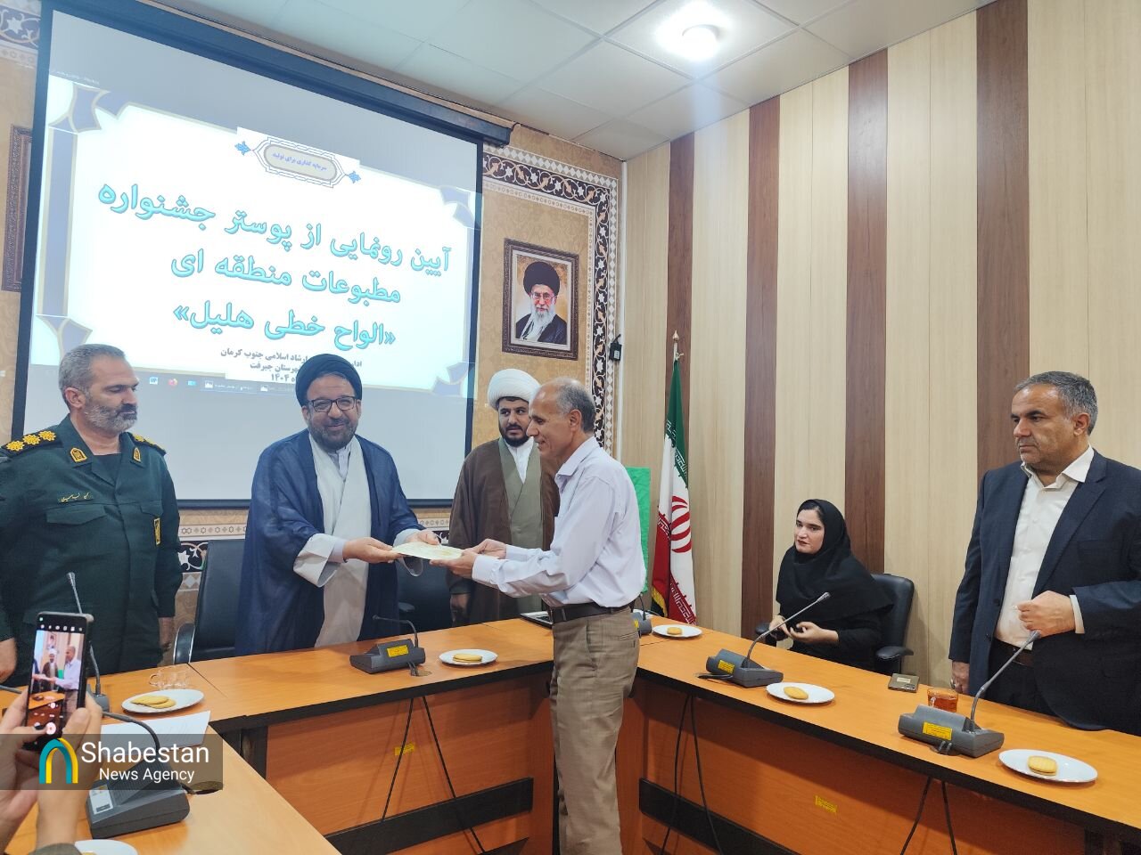 طی مراسمی با حضور فرمانده ناحیه مقاومت بسیج سپاه جیرفت و مسئول حوزه نمایندگی ولی فقیه در سپاه جیرفت از پوستر جشنواره مطبوعات منطقه ای «الواح خطی هلیل» رونمایی شد.