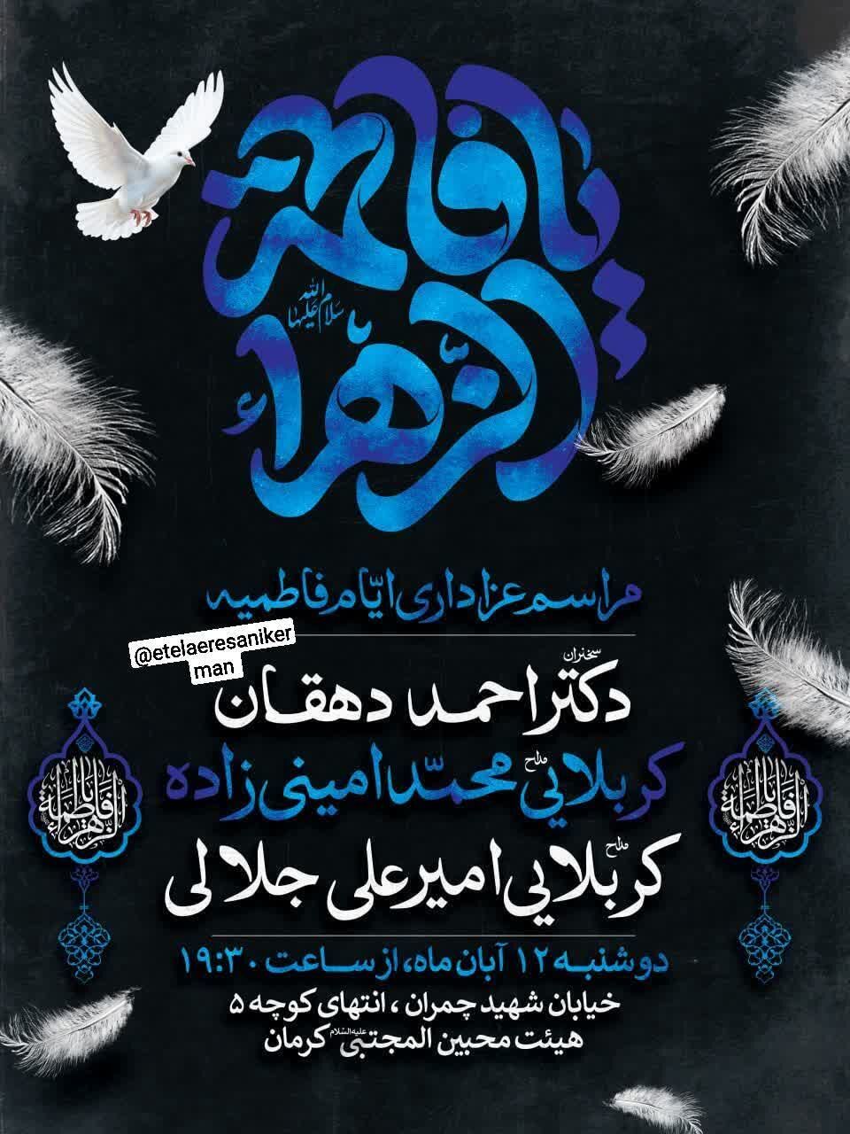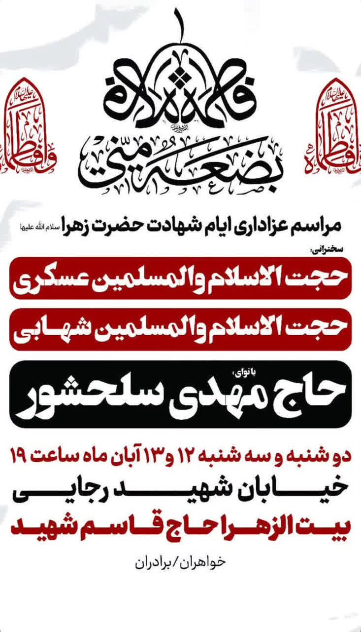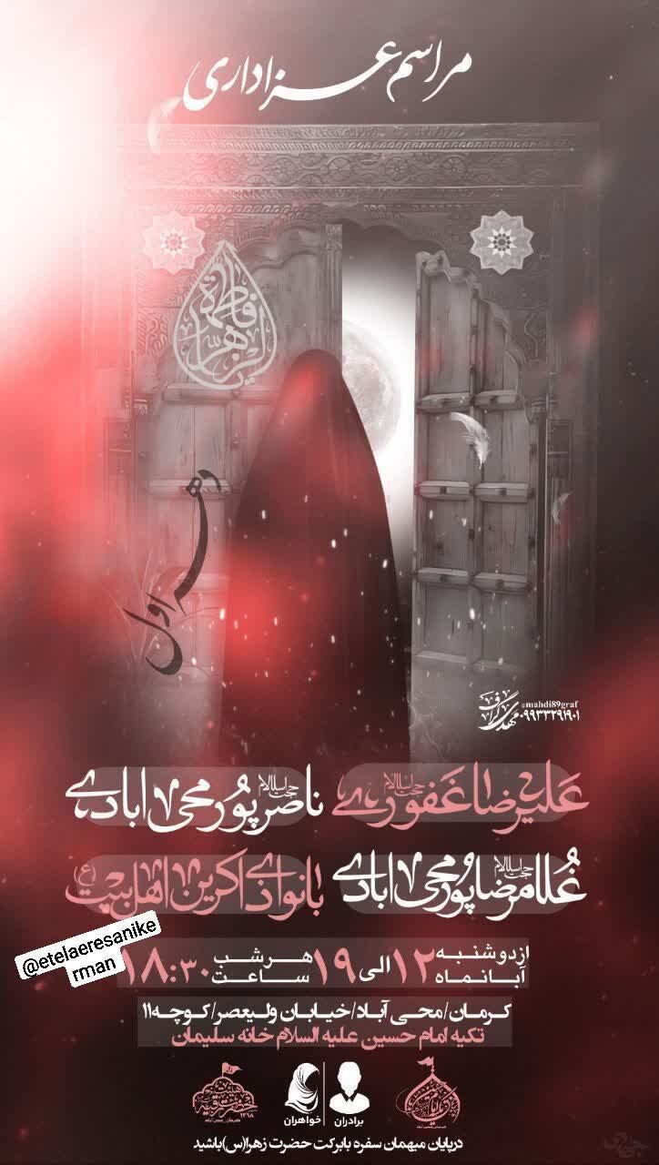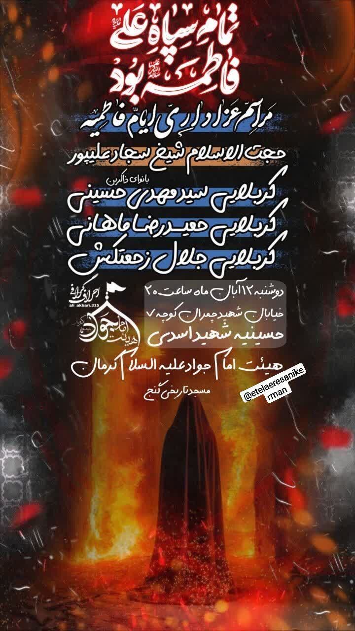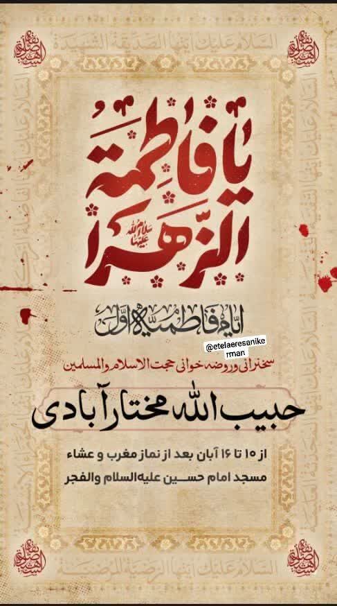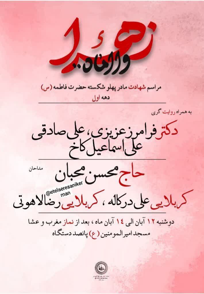 استانها کرمان ۱۲ آبان ۱۴۰۴ - ۱۷:۱۰ دریافت تصاویر برنامههای مساجد و هیئات کرمان در فاطمیه اول همزمان با ایام فاطمیه اول مساجد و هیئتهای مذهبی کرمان در نقاط مختلف شهر مراسم عزاداری و سوگواری برگزار میکنند. برچسبها خبرگزاری شبستان کرمان مراسم فاطمیه اول مساجد و هیئات کرمان اخبار مرتبط معرفت فاطمی؛ شاهکلید زیست عفیفانه