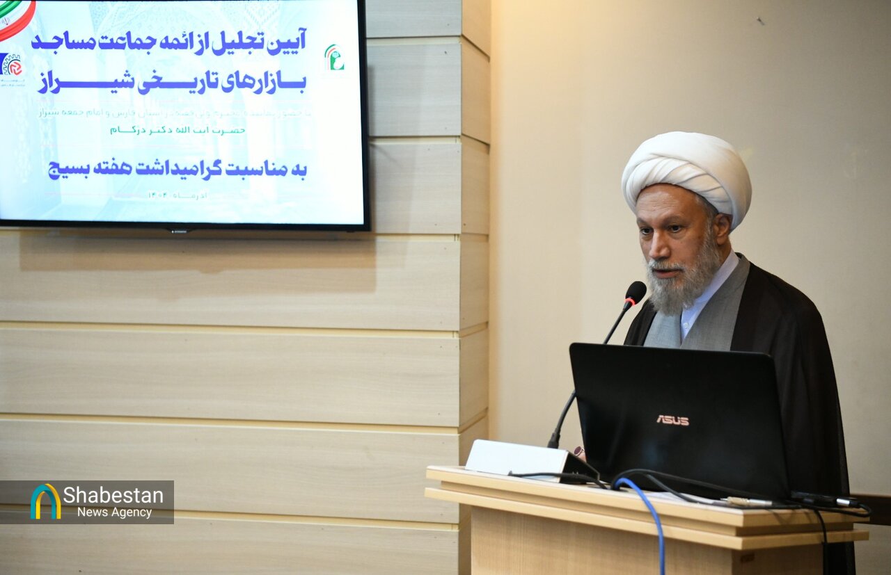 آیین تجلیل از ائمه جماعات مساجد بازارهای تاریخی شیراز ظهر امروز با حضور آیتالله دژکام، نماینده ولیفقیه در استان فارس، و جمعی از مسئولان اتاق اصناف استان با هدف پاسداشت نقش فرهنگی، دینی و اجتماعی روحانیون فعال در بازارهای سنتی شیراز برگزار شد.