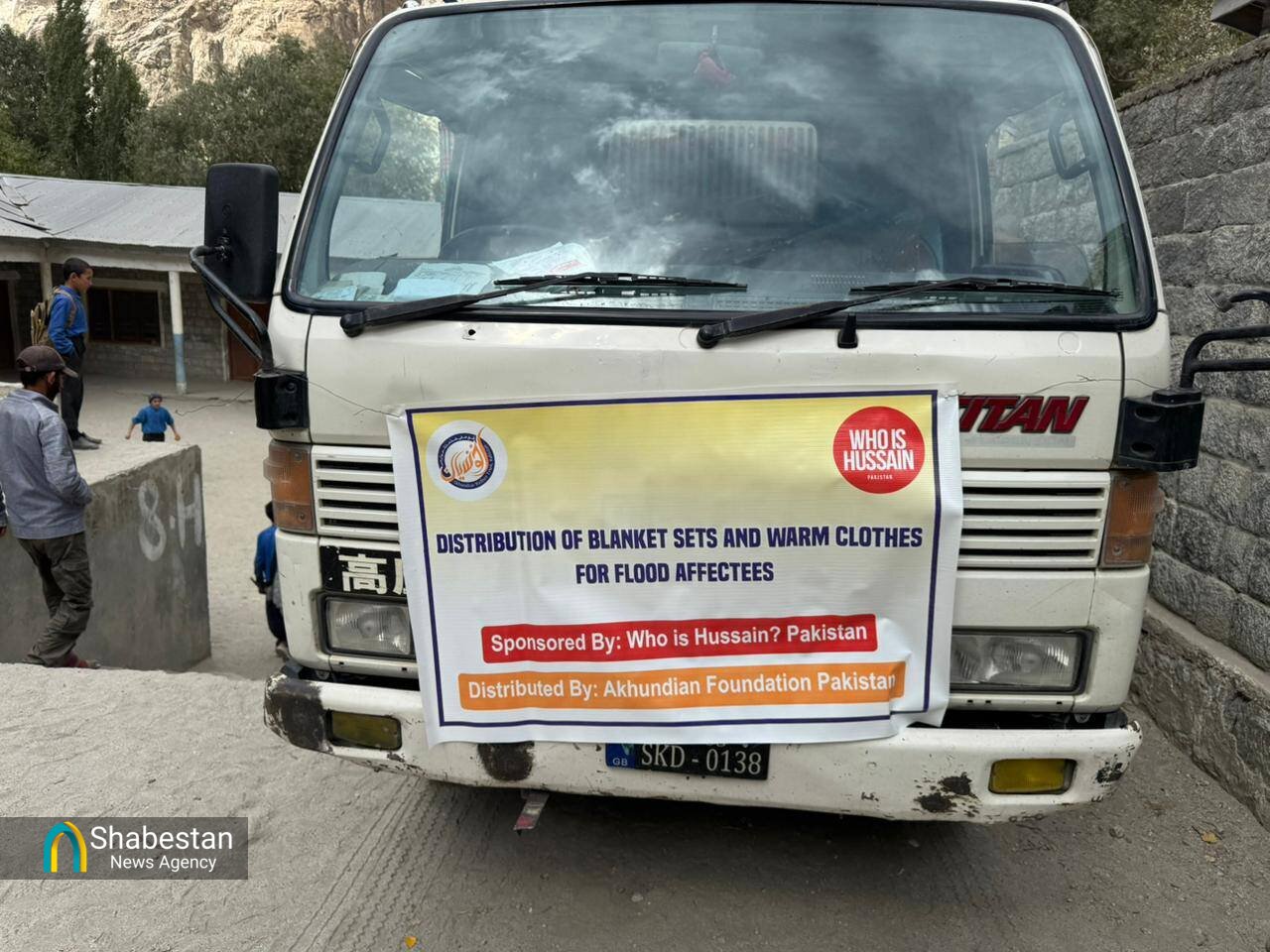 داوطلبان سازمان مردمنهاد «?Who is Hussain » در مناطق سیلزده ایالت بلتستان پاکستان با توزیع ۱۰۰۰ ژاکت و ۵۳ بسته شامل پتو، تشک و بالش، به خانوادههای سیلزده کمک کردند.