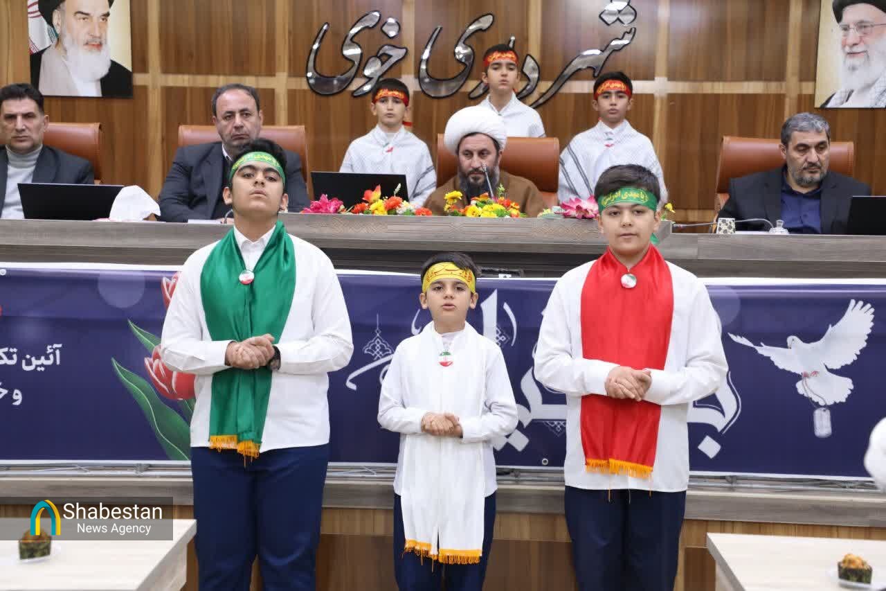 آئین تکریم مادران و همسران شهدا در قالب طرح «با باقیان» در سالن شهید برگزینی شهرداری خوی و با تجلیل از مادران و همسران دو شهید و جنگ ۱۲ روزه برگزار شد.