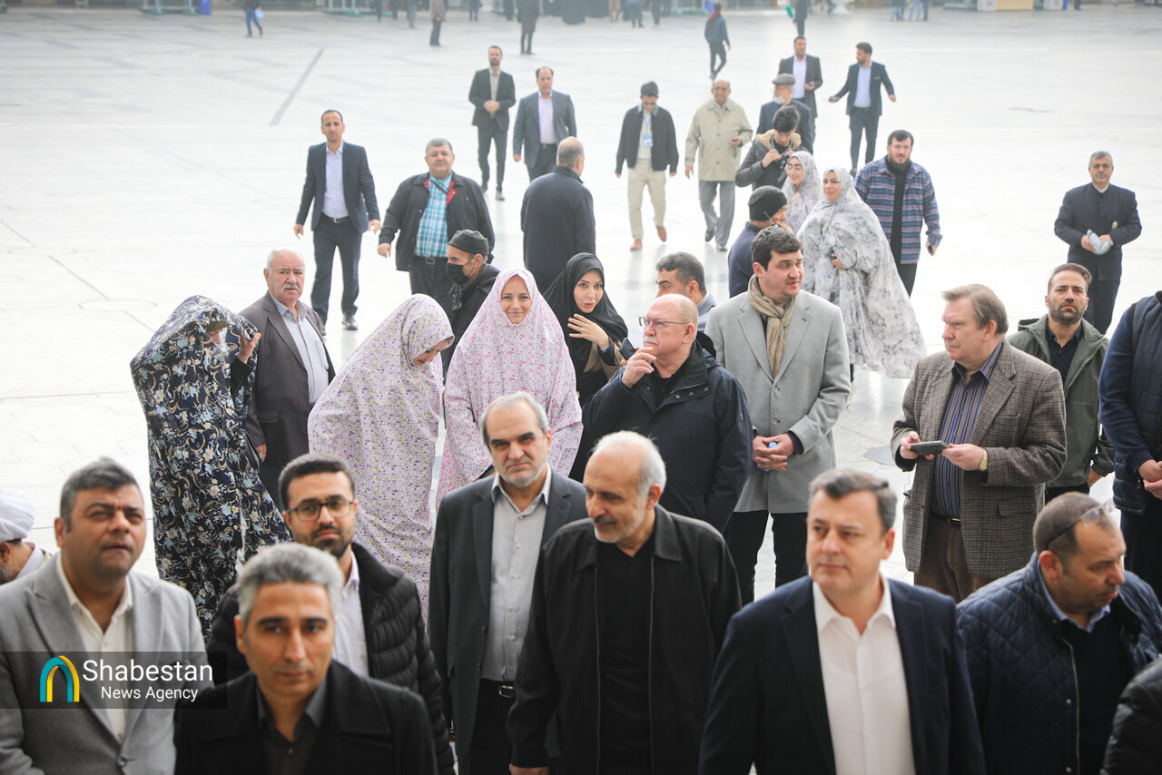جمعی از مهمانان خارجی شرکتکننده در نشست کمیته دائمی امور سیاسی مجمع مجالس آسیایی (APA) که در شهر مشهد برگزار شد، امروز جمعه ۱۴ آذر ماه ۱۴۰۴ از موزه آستان قدس رضوی و صحنهای مختلف حرم امام رضا علیهالسلام بازدید کردند.