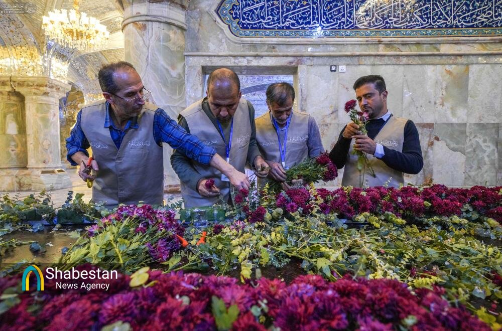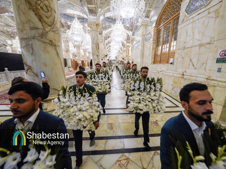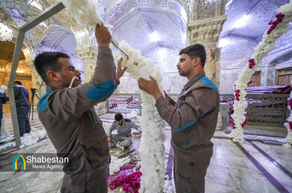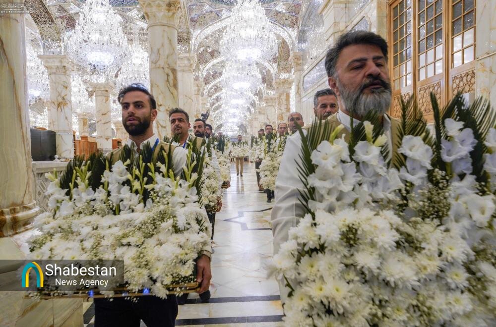در آستانۀ سالروز ولادت حضرت زهرا (سلام‌الله‌علیها)، رواق‌های حرم مطهر علوی با هزاران گل طبیعی آذین شده است.