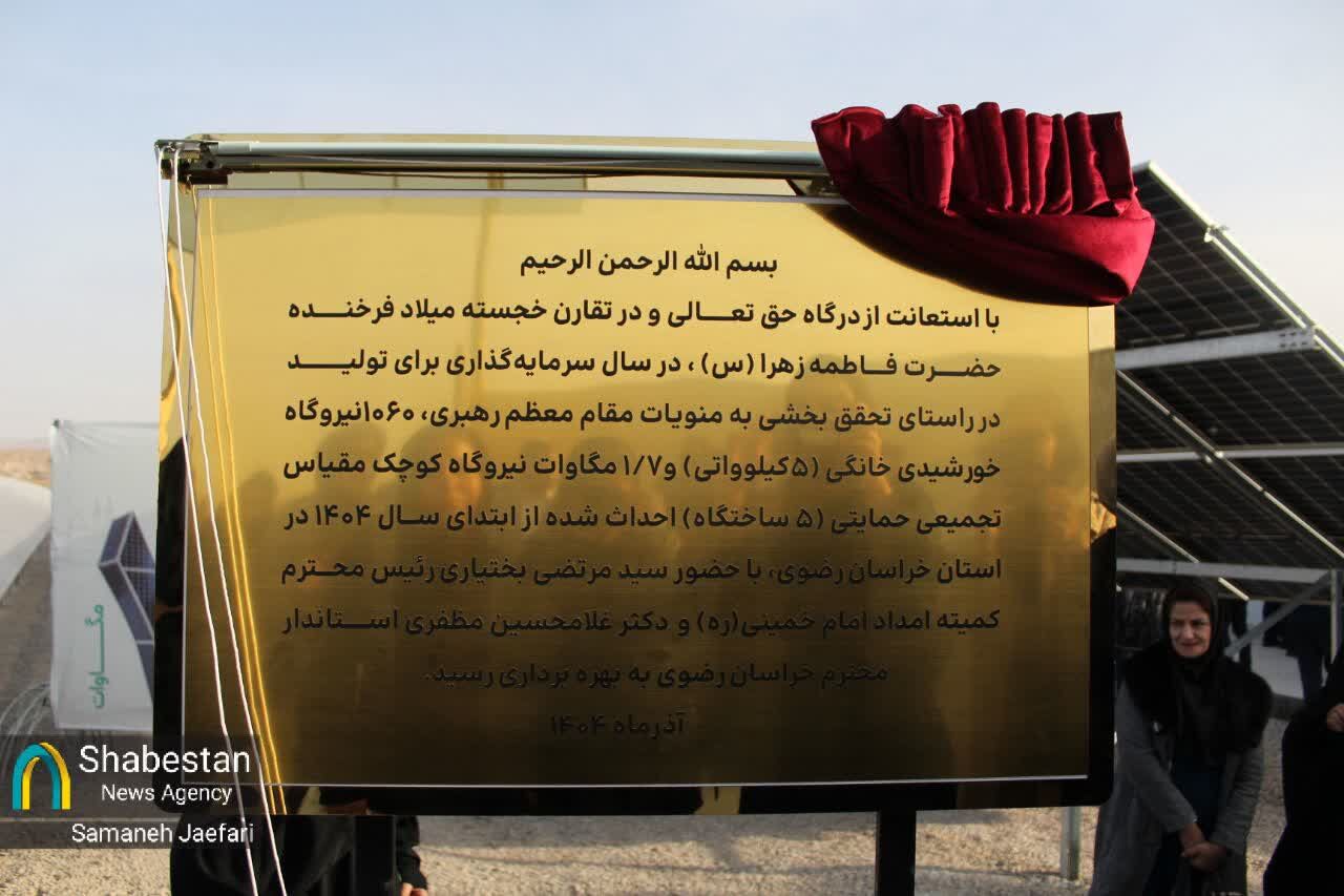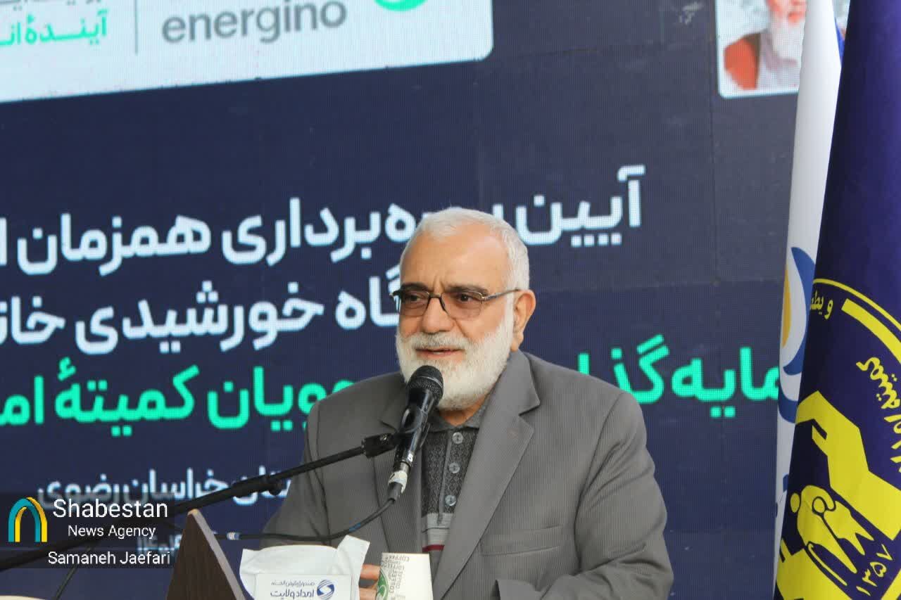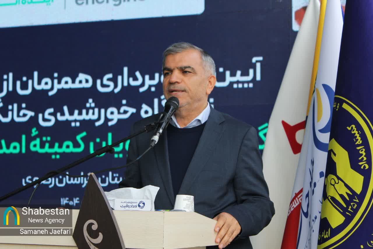 آیین بهره برداری همزمان از ۷ مگاوات نیروگاه خورشیدی خانگی با سرمایه گذاری مددجویان کمیته امداد امام خمینی (ره) و با حضور رئیس کمیته امام خمینی (ره) سید مرتضی بختیاری، مظفری استاندار خراسان رضوی، تعدادی از نمایندگان مجلس شورا اسلامی و مدیر عامل بنیاد فیروز آبادی و سایر مسئولان کشوری و استانی برگزار شد.