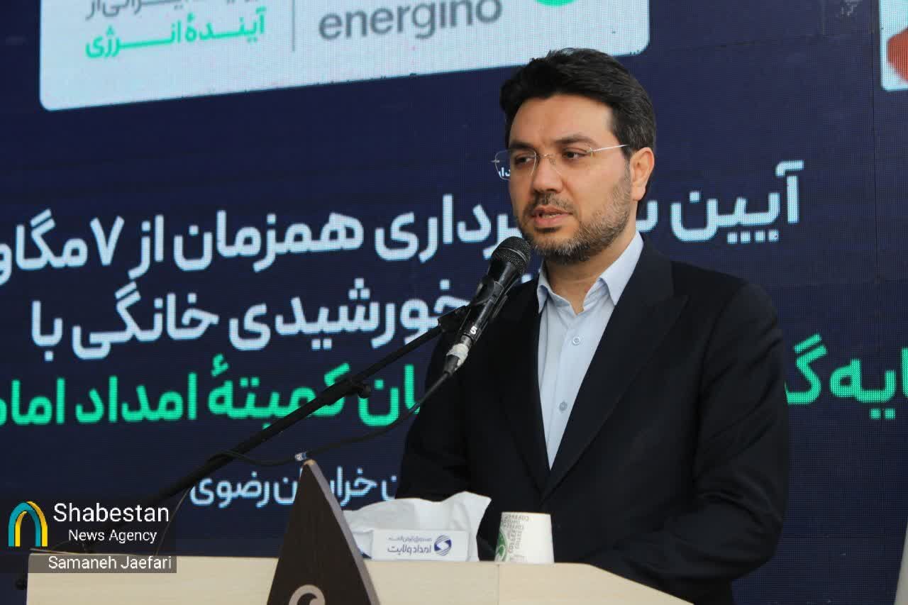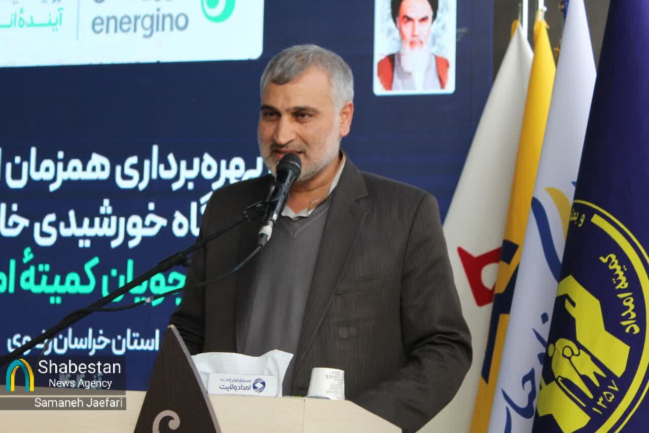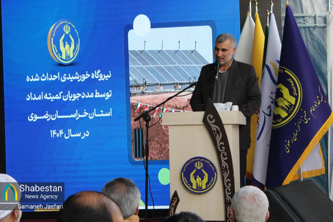 آیین بهره برداری همزمان از ۷ مگاوات نیروگاه خورشیدی خانگی با سرمایه گذاری مددجویان کمیته امداد امام خمینی (ره) و با حضور رئیس کمیته امام خمینی (ره) سید مرتضی بختیاری، مظفری استاندار خراسان رضوی، تعدادی از نمایندگان مجلس شورا اسلامی و مدیر عامل بنیاد فیروز آبادی و سایر مسئولان کشوری و استانی برگزار شد.