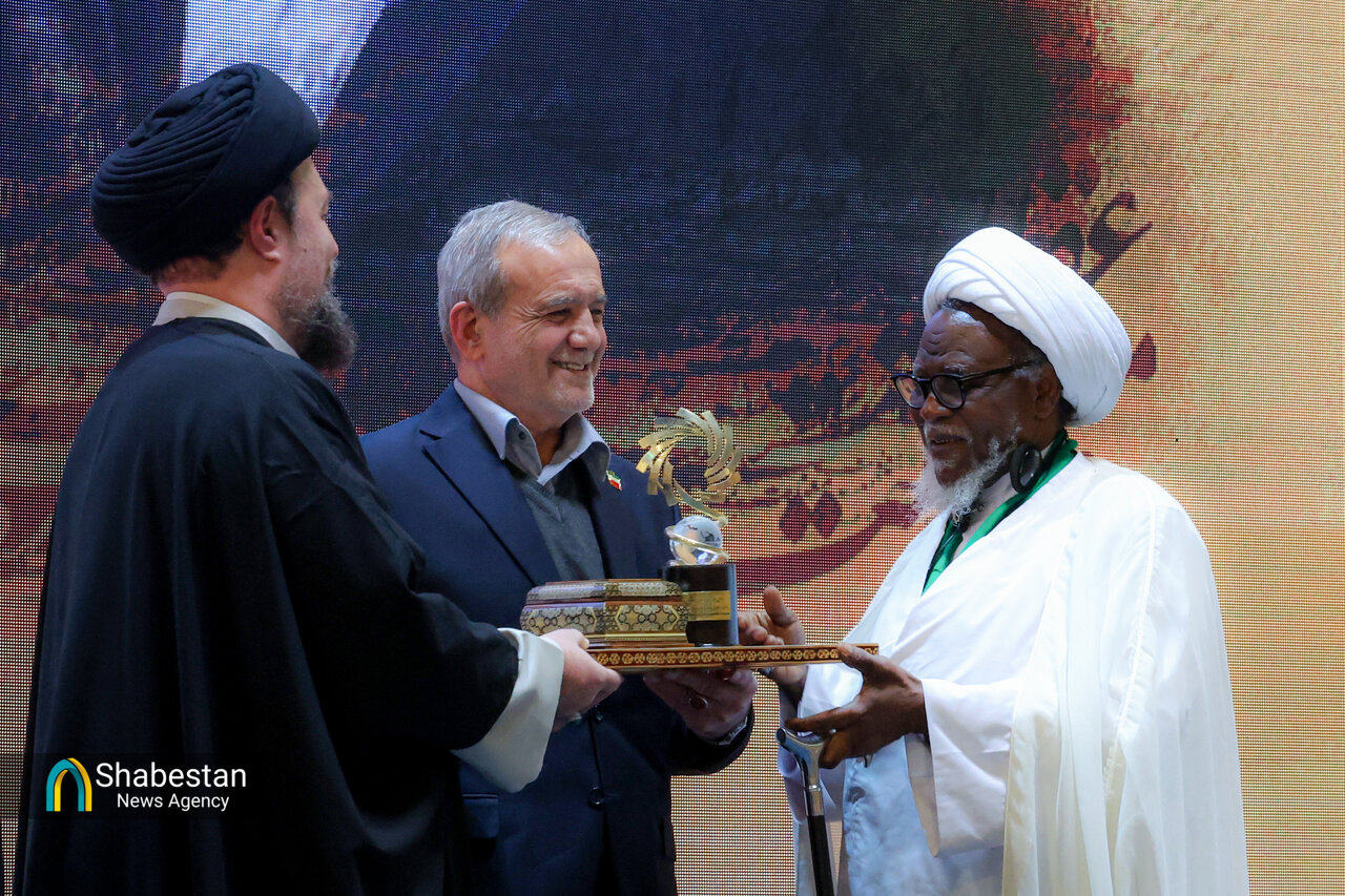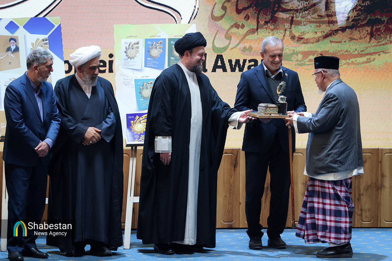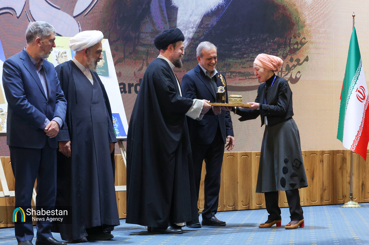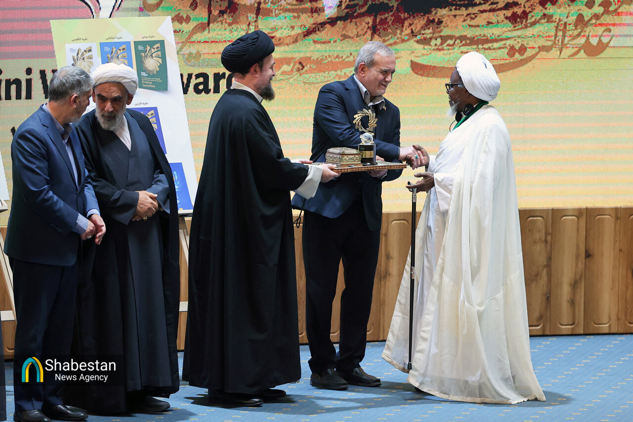 مراسم نخستین دوره اعطای جایزه جهانی امام خمینی (ره)، عصر امروز چهارشنبه با حضور دکتر مسعود پزشکیان در سالن اجلاس سران برگزار شد.
