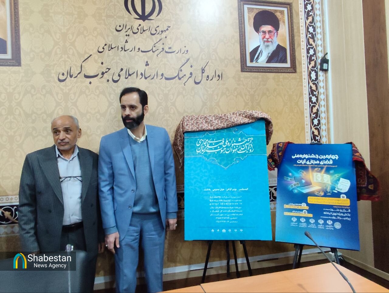 با حضور مدیرکل تبلیغ و ترویج معاونت قرآن و عترت وزارت فرهنگ و ارشاد اسلامی از پوستر جشنواره ملی «روایت رضوان» و « فضای مجازی آیات» در سالن کنفرانس اداره کل فرهنگ و ارشاد اسلامی جنوب کرمان رونمایی شد.