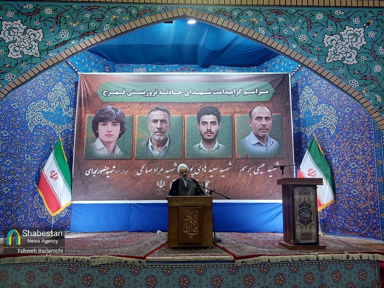 مراسم بزرگداشت شهیدان عیسی برسم، سعیدی هادی‌پور، مراد صالحی و نوجوان اهل سنت منصور لجه‌ای که در حمله تروریست‌ها به ایست و بازرسی فهرج به شهادت رسیدند؛ با حضور اقشار مختلف مردم و مسئولین در حسینیه ثارالله کرمان برگزار شد.