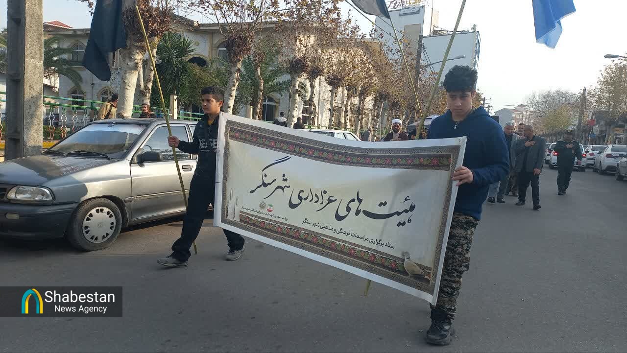 مراسم دسته آرایی به مناسبت شهادت امام هادی (ع) با حضور امام جمعه، بخشدار، مردم ولایی و عزادار سنگر از حوزه بسیج تا مسجد جامع این شهر برگزار شد.