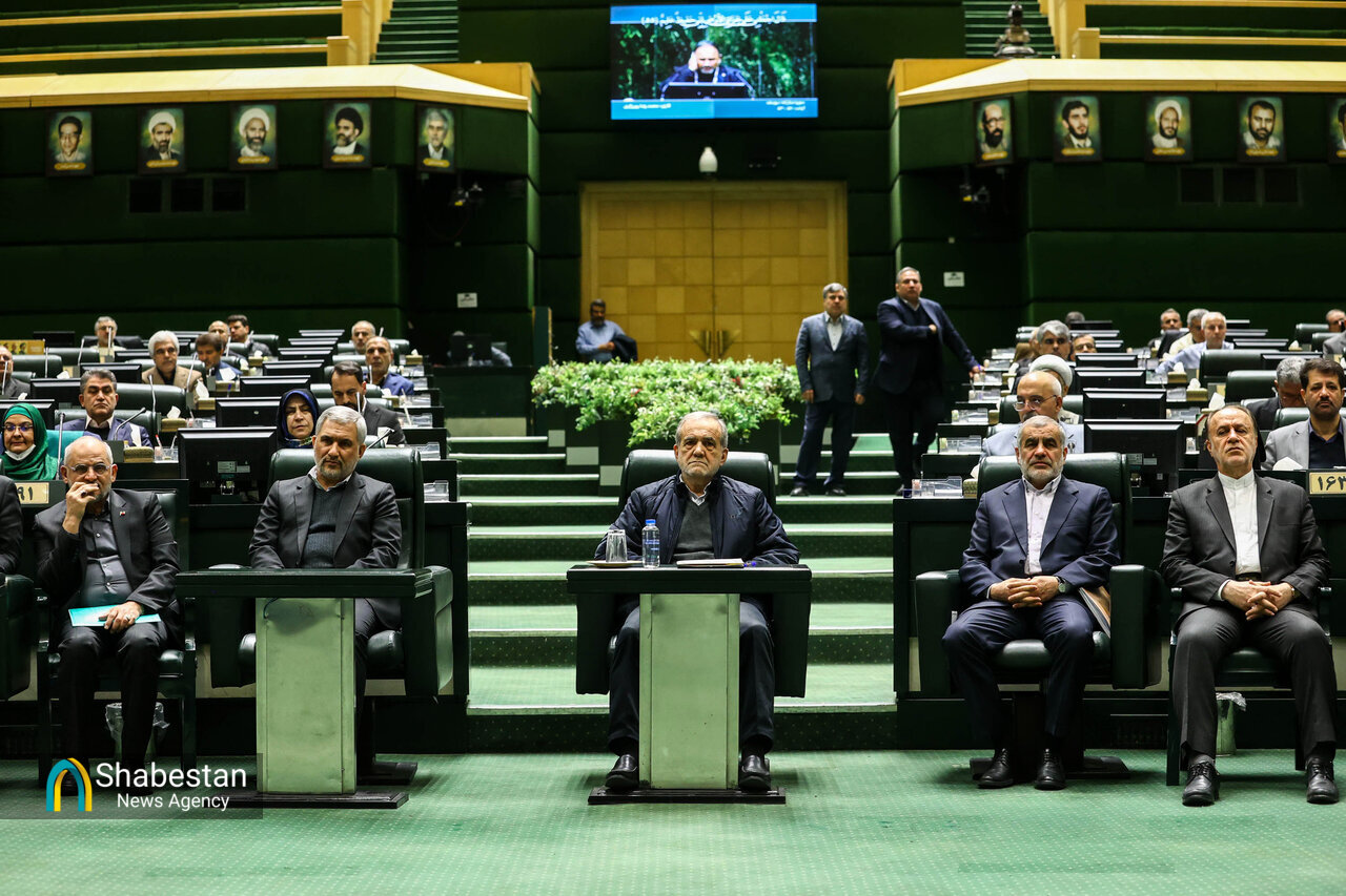 جلسه بررسی لایحه بودجه سال ۱۴۰۵ کل کشور صبح امروز یکشنبه ۷ دی ماه ۱۴۰۴ با حضور دکتر مسعود پزشکیان رئیس جمهور و جمعی از اعضای هیئت دولت در صحن مجلس شورای اسلامی به ریاست دکتر محمدباقر قالیباف رئیس قوه مقننه برگزار شد.