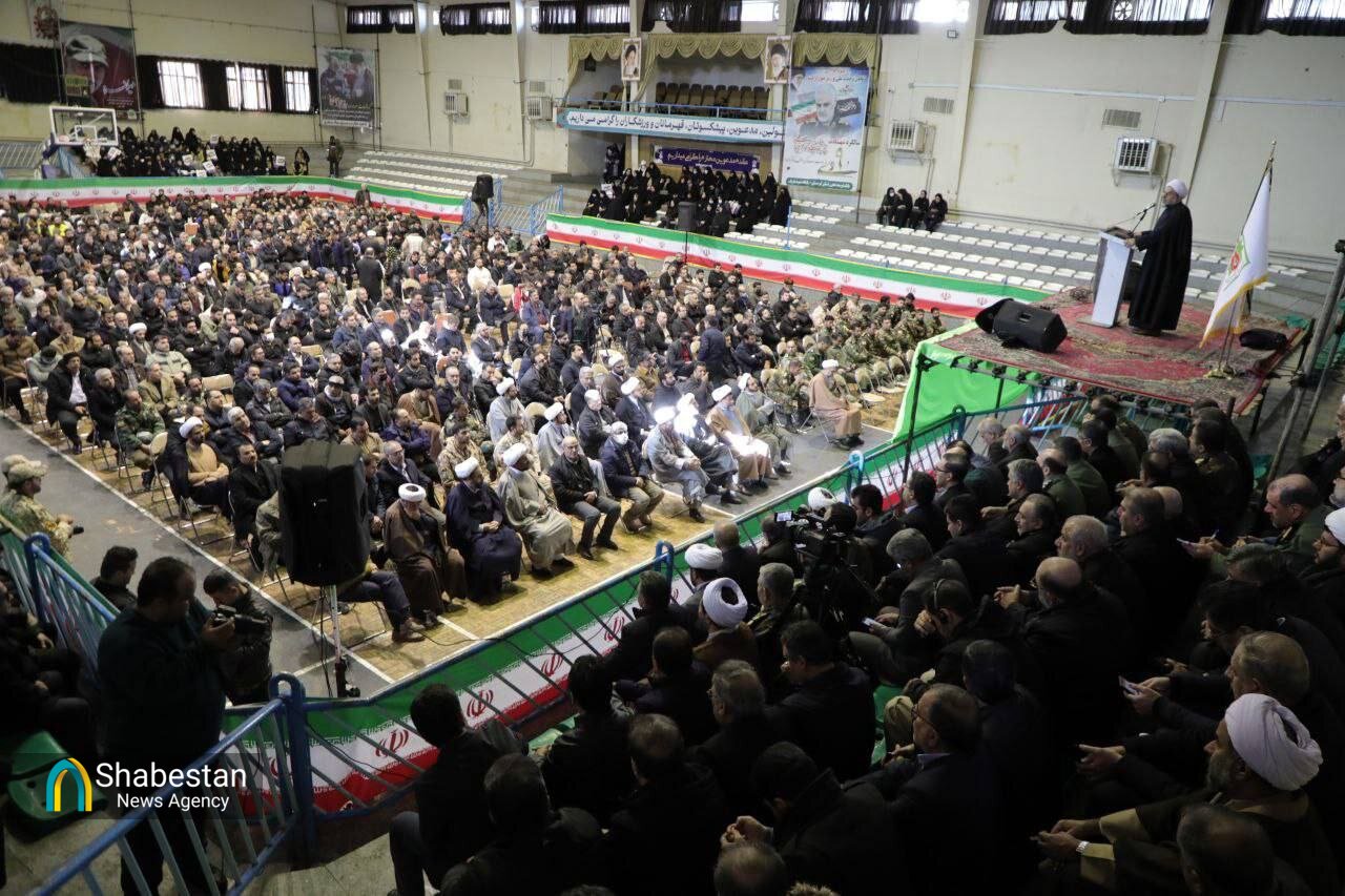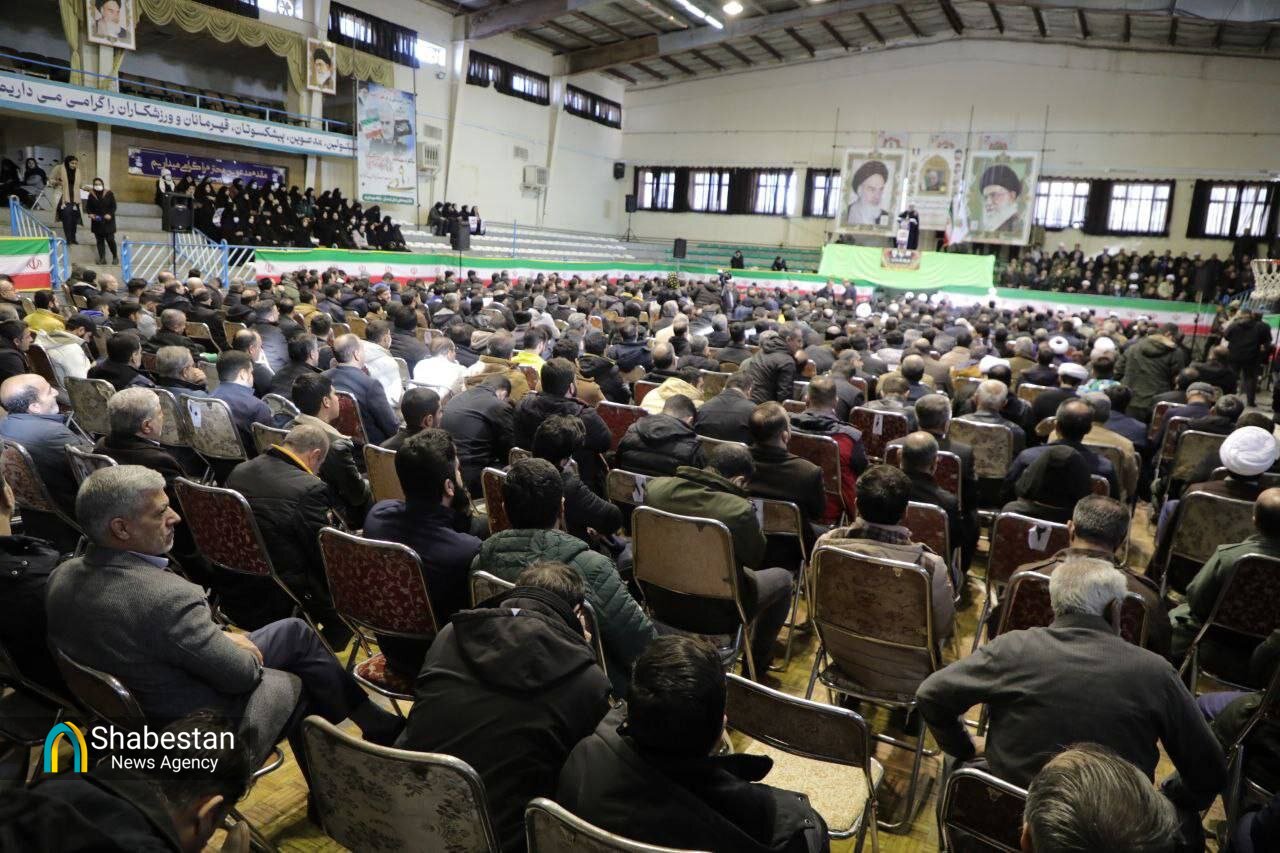 مراسم گرامیداشت سالروز تاریخی حماسه نهم دی و سالروز شهادت سردار دلها شهید حاج قاسم سلیمانی و شهید ابومهدی المهندس در ورزشگاه آزادی سنندج برگزار شد.