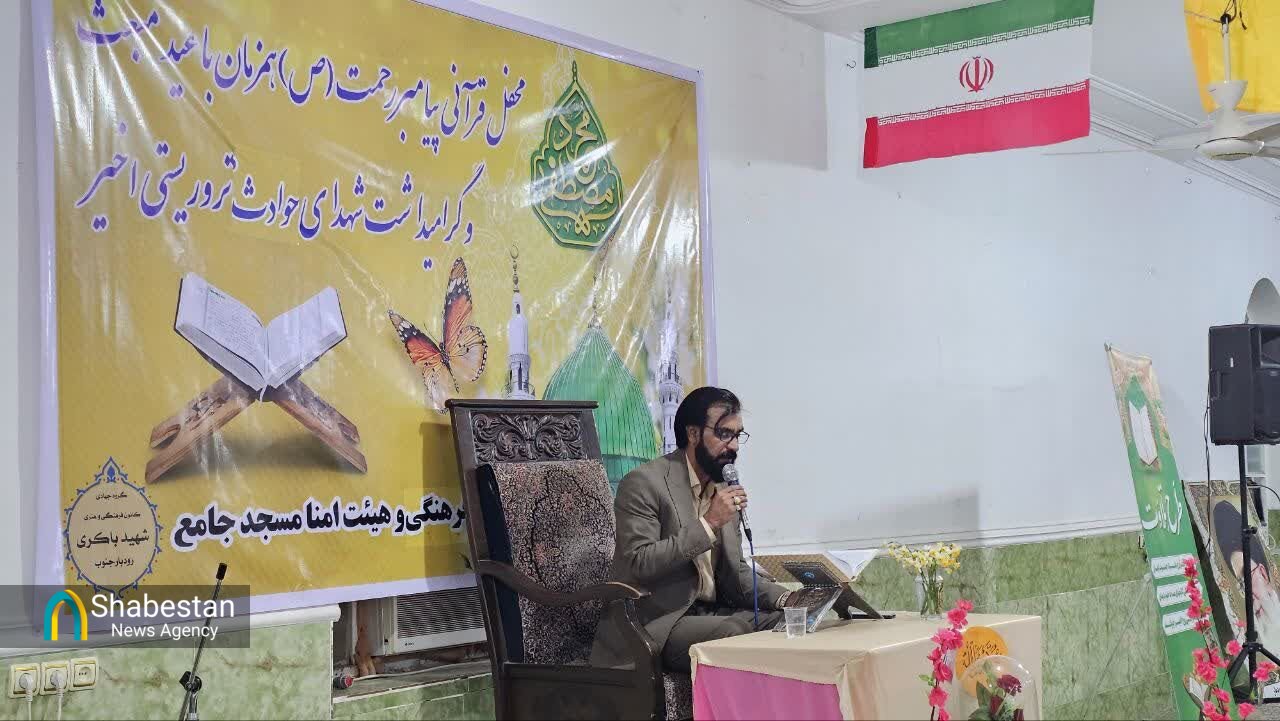 به همت کانون فرهنگی هنری شهید باکری با همکاری دفتر قرآن و عترت اداره کل فرهنگ و ارشاد اسلامی جنوب کرمان سومین مرحله از اجرای طرح تلاوت نور همراه با مراسم گرامیداشت شهدای حوادث تروریستی اخیر در رودبار جنوب برگزار شد.