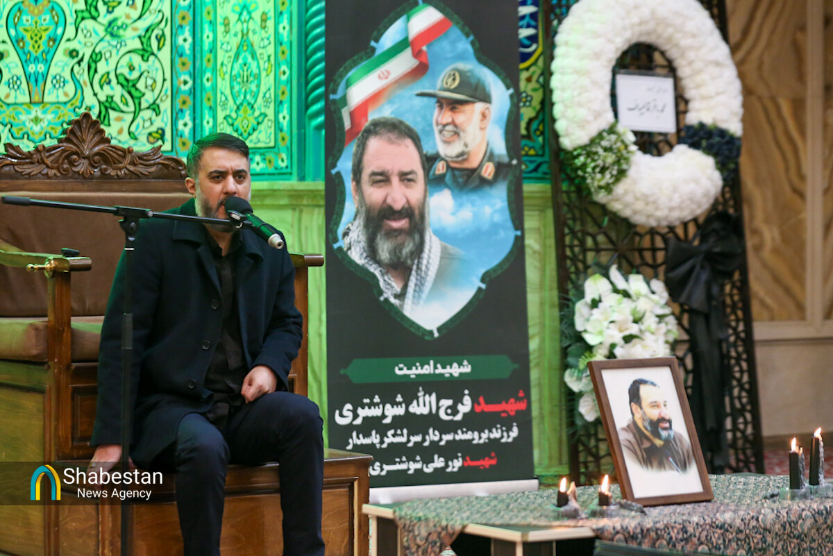 مراسم بزرگداشت شهید فرج‌الله شوشتری، فرزند سردار شهید نورعلی شوشتری عصر امروز (سه‌شنبه، ۳۰ دی ماه) با حضور شخصیت‌های کشوری ازجمله سردار پاکپور، فرمانده سپاه پاسداران، سردار قاآنی، فرمانده سپاه قدس، دکتر قالیباف، رئیس مجلس و ... در مسجد جامع امام صادق(ع) واقع در میدان فلسطین تهران برگزار شد.