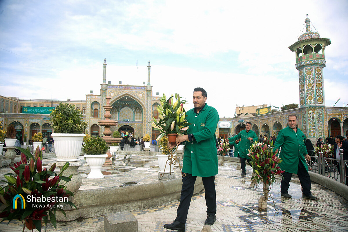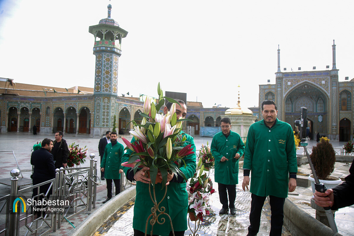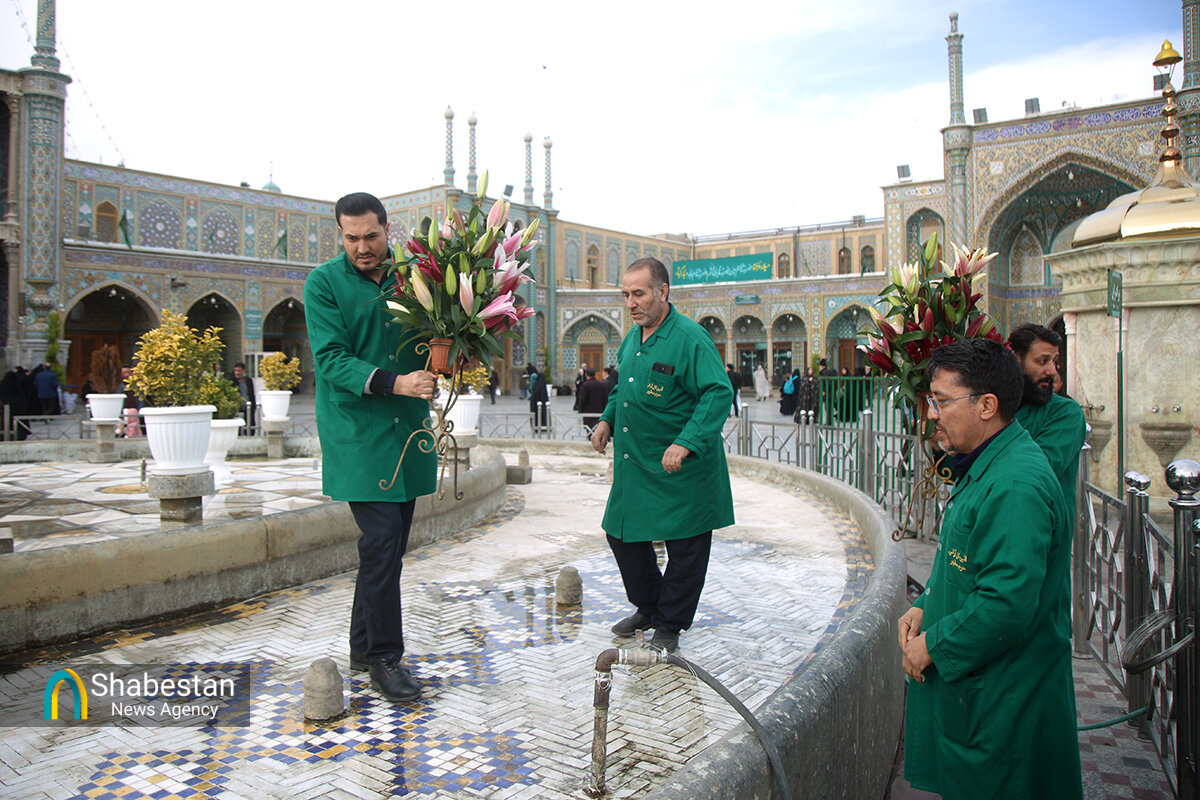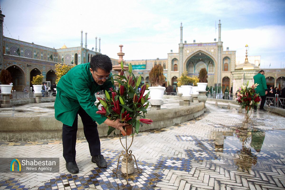 صحن امام رضا علیه السلام حرم مطهر حضرت فاطمه معصومه سلام الله علیها به مناسبت اعیاد شعبانیه با انواع گلهای طبیعی گلآرایی شد.