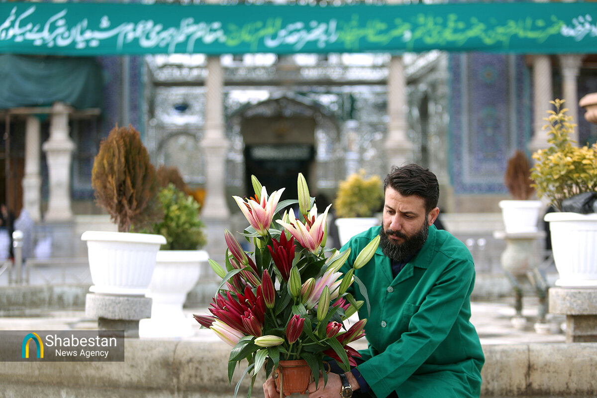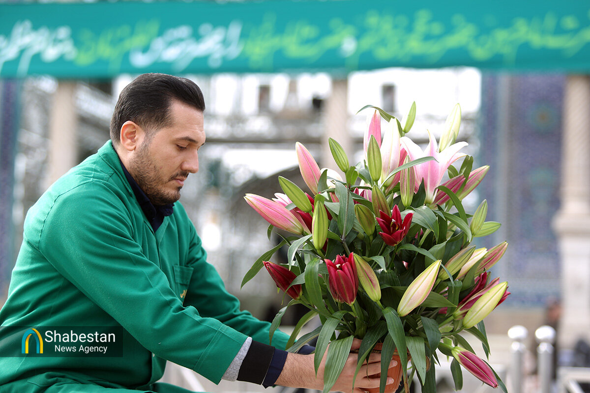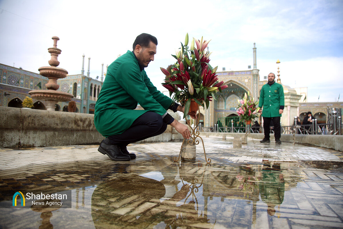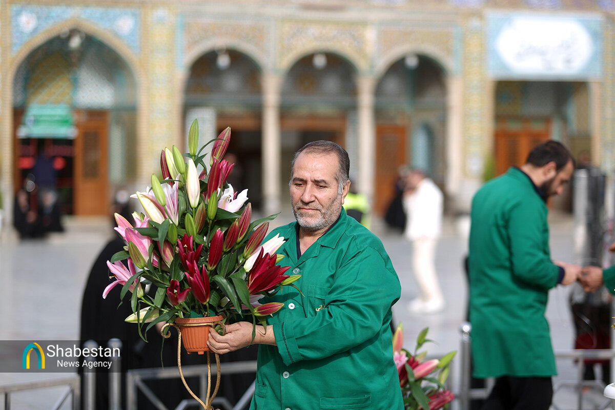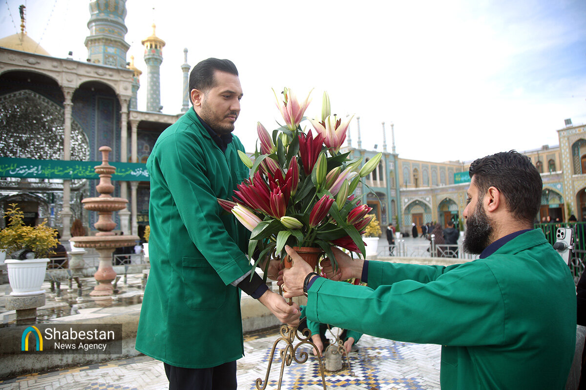 صحن امام رضا علیه السلام حرم مطهر حضرت فاطمه معصومه سلام الله علیها به مناسبت اعیاد شعبانیه با انواع گلهای طبیعی گلآرایی شد.