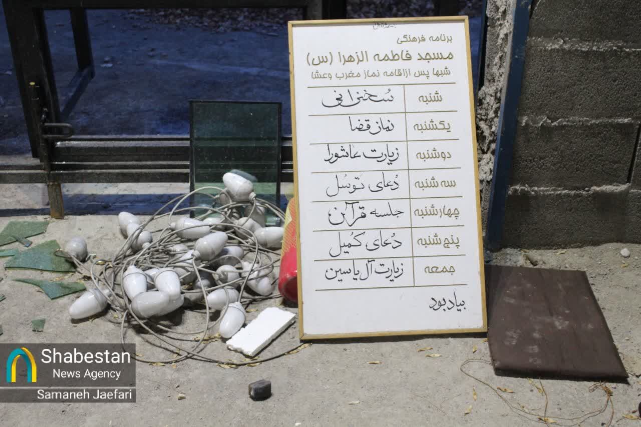 مسجد فاطمه الزهرا(س) محله دانش آموز مشهد مقدس و کانونفرهنگی انسیهالحوراء این مسجد، یکی از مساجد و کانونهایی است که آسیبهای زیادی را دراغتشاشات اخیر دیده است.
