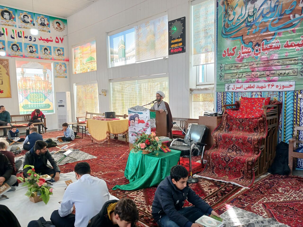 محفل انس با قرآن کریم در مسجد جامع روستای قرهباغ به همت روحانی مسجد و مدیر کانون فرهنگی هنری شهدای قرهباغ، حجتالاسلام والمسلمین عسگر کرمزاده و با حضور نوجوانان، جوانان و قاری بینالمللی حمید شکارچی برگزار شد.