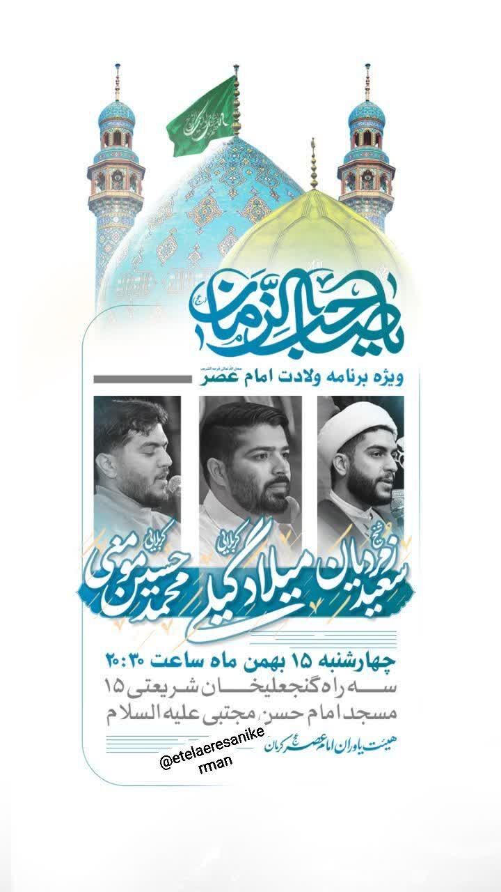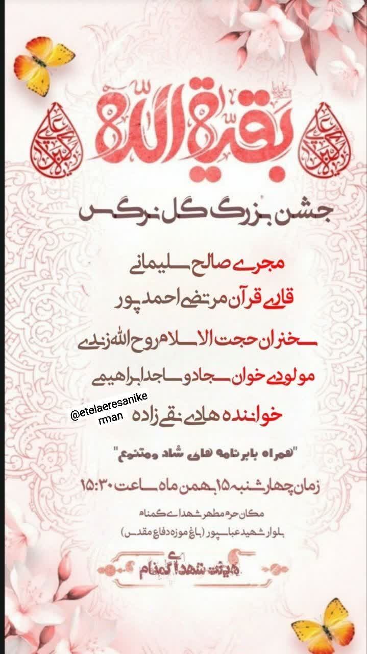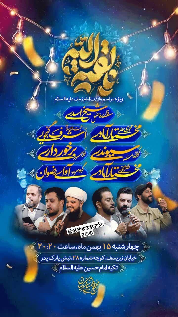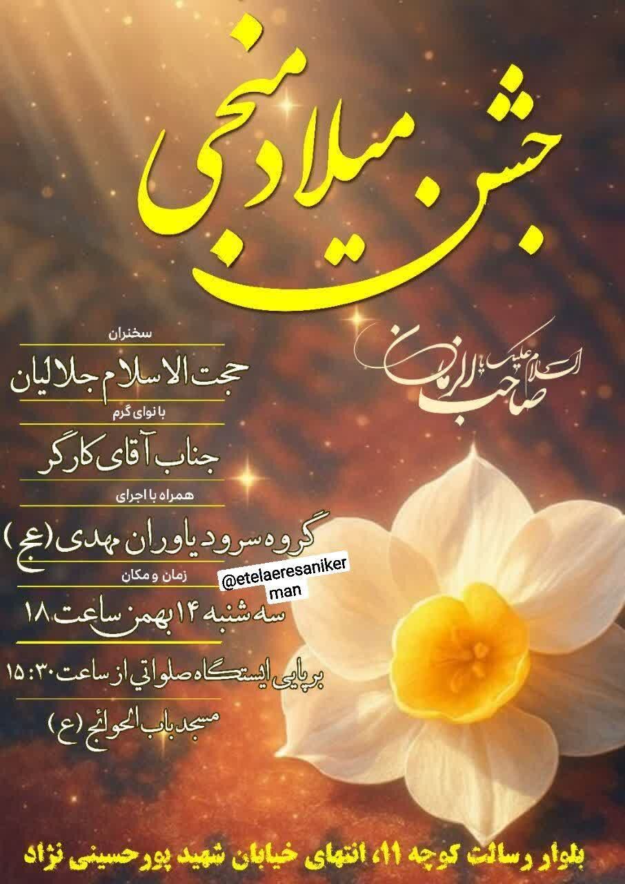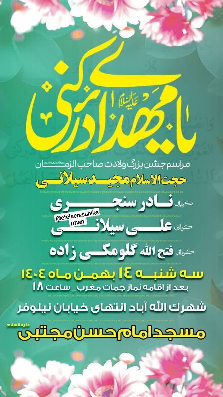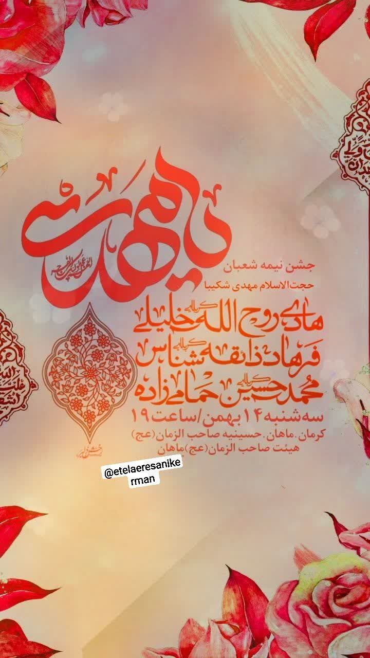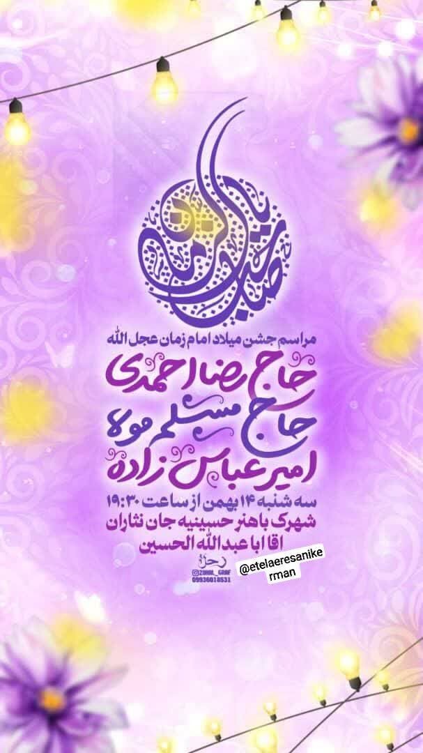 همزمان با نیمه شعبان، سالروز میلاد مسعود حضرت مهدی موعود عجلالله تعالی فرجه الشریف مراسم جشن و سرور در نقاط مختلف استان و بیش از ۵۰ نقطه از شهر کرمان برگزار میشود.