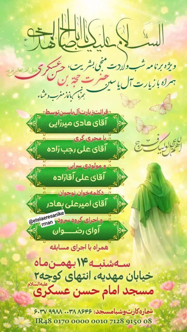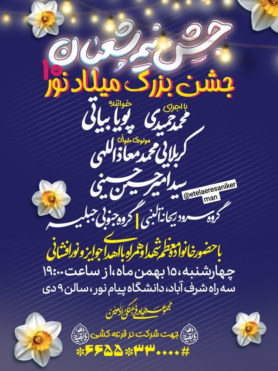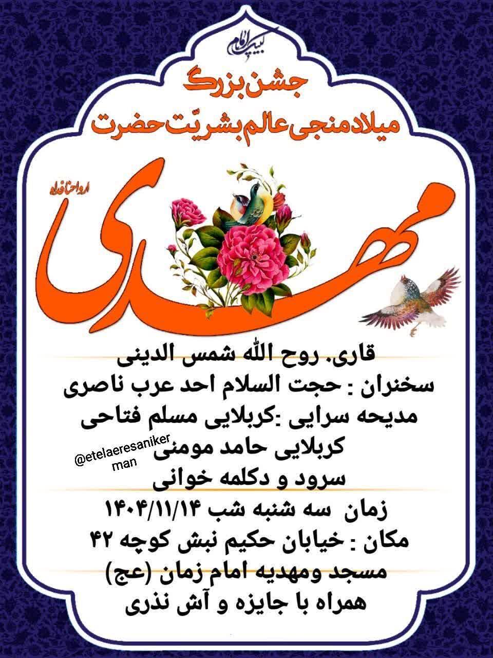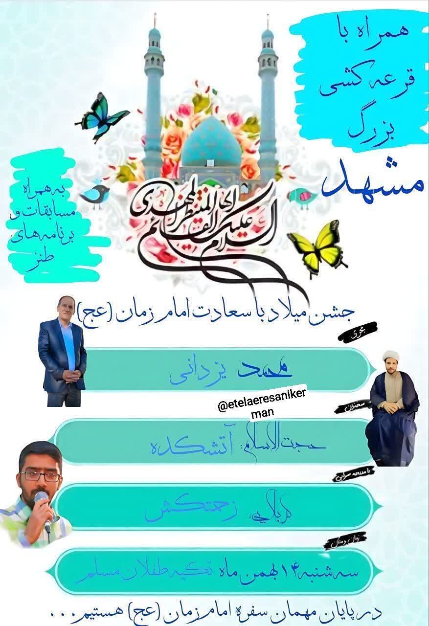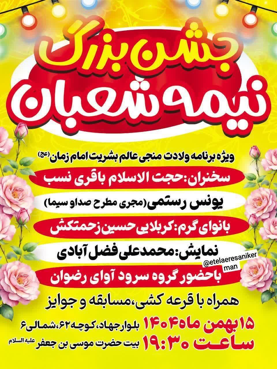 همزمان با نیمه شعبان، سالروز میلاد مسعود حضرت مهدی موعود عجلالله تعالی فرجه الشریف مراسم جشن و سرور در نقاط مختلف استان و بیش از ۵۰ نقطه از شهر کرمان برگزار میشود.