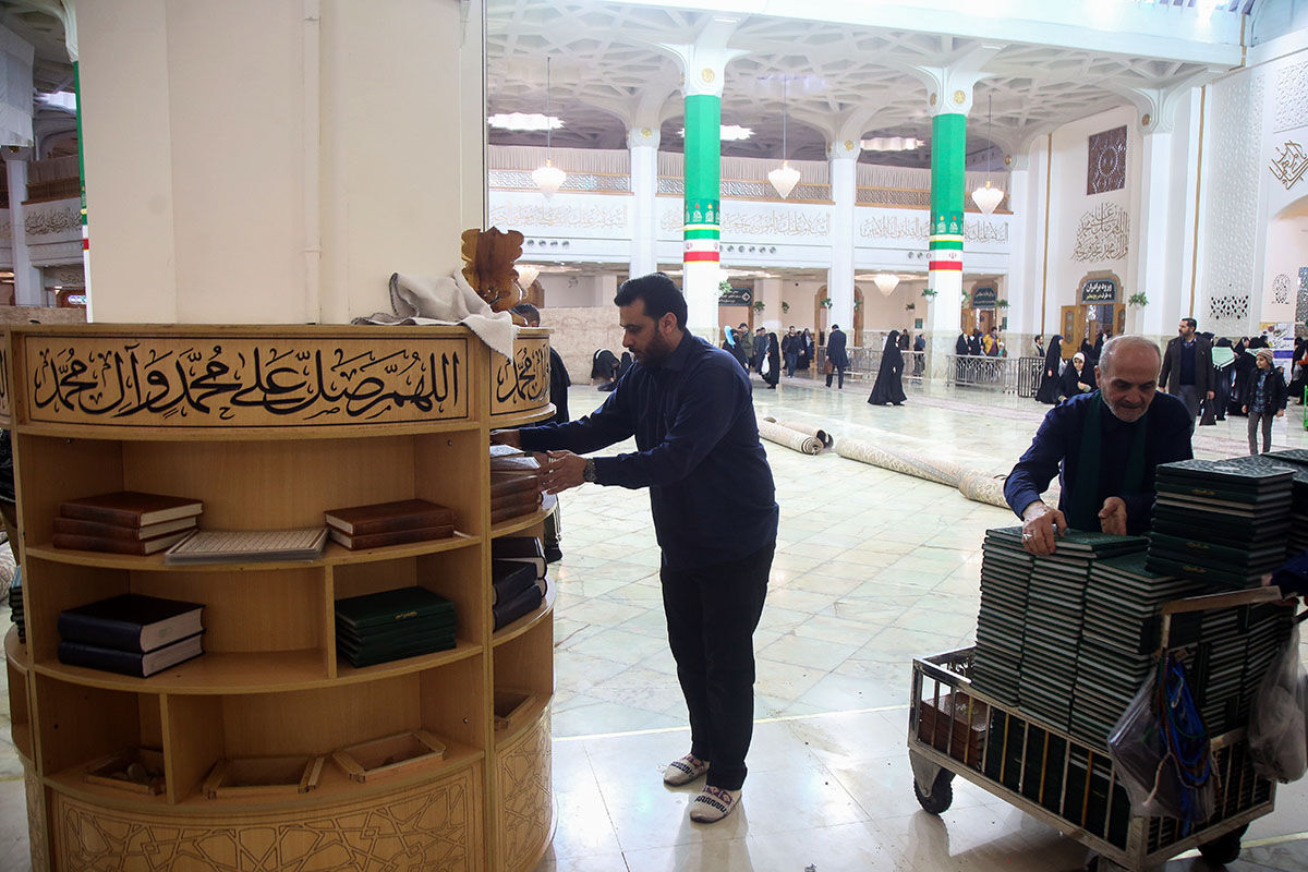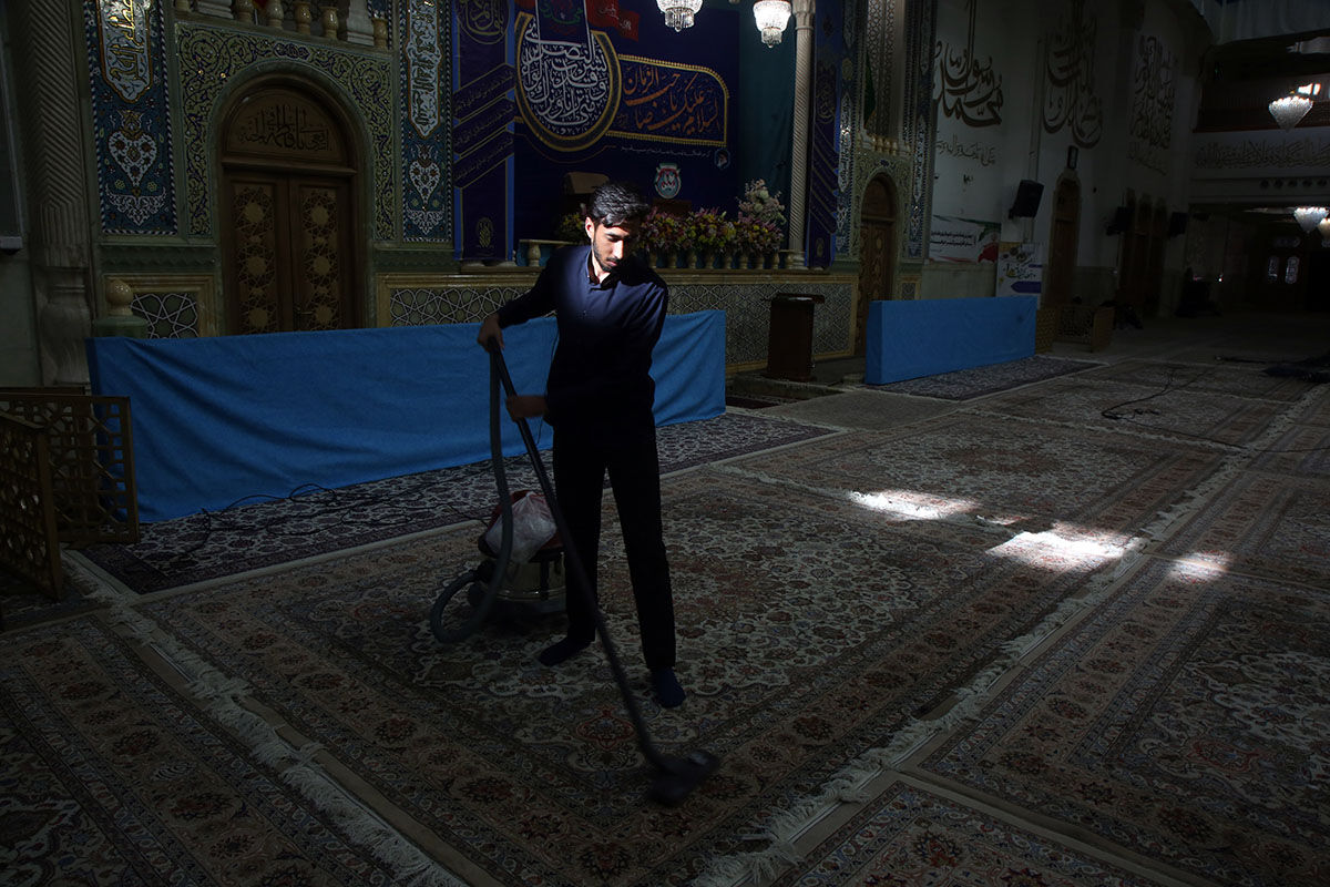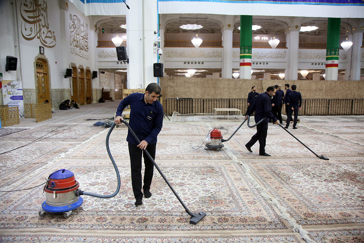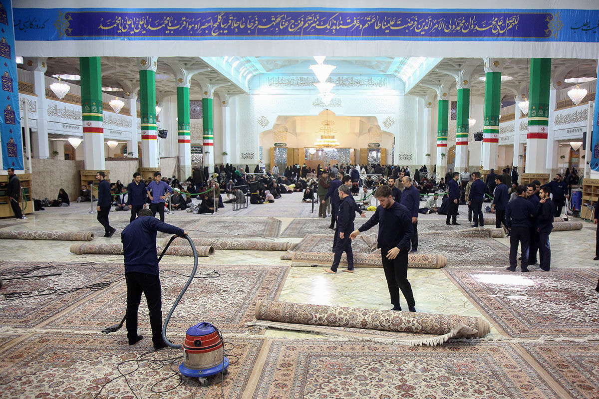 شبستان‌های حرم مطهر حضرت فاطمه معصومه سلام الله علیها در آستانه ماه مبارک رمضان توسط خادمان بخش خدمات اماکن حرم مطهر غبارروبی و نظافت شد.