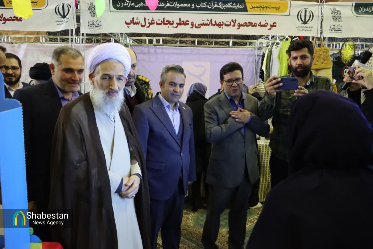 آیت الله محمدباقر محمدی لائینی-نماینده ولی فقیه درمازندران از غرفه های بیست و پنجمین نمایشگاه بزرگ قرآن استان در حسینیه ثارالله قائم‌شهر بازدید کرد.