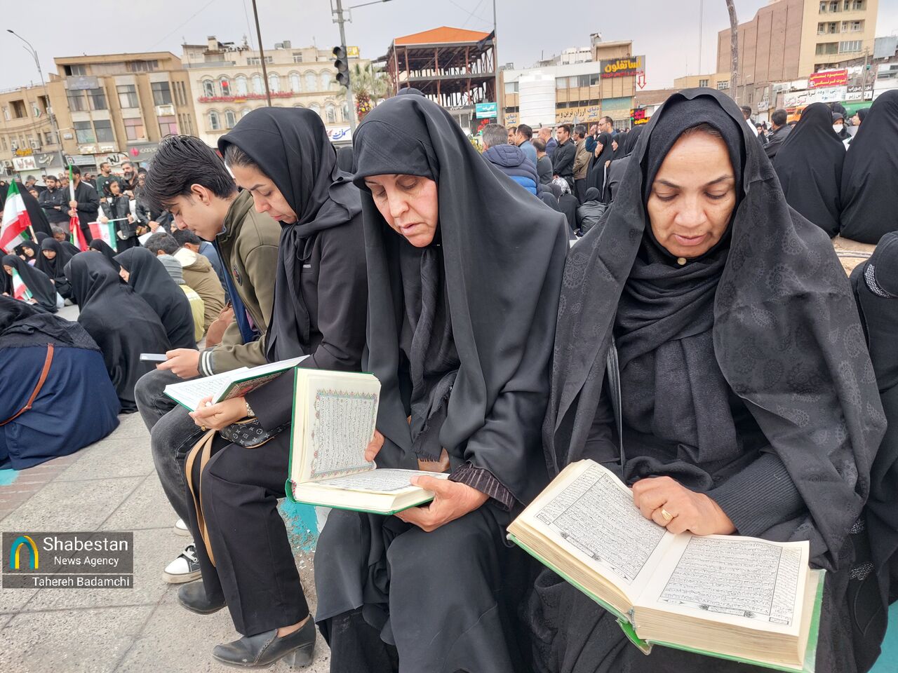 هزاران نفر از مردم ولایی کرمان بلافاصله پس از شنیدن خبر شهادت جانسوز امامالمسلمین، حضرت آیتالله خامنهای از ساعت ۶ صبح روز دهم اسفندماه به میدان آزادی آمده و تا چندین ساعت پس از افطار نیز در این میدان حضور داشتند؛ عزاداری و سوگواری، فریادهای انتقامخواهی، سینهزنی، جزءخوانی قرآن و... از جمله برنامههای این اجتماع عاشورایی بود؛ دو وعده نیز اقامه جماعت در میدان و خیابانهای اطراف برگزار شد و هنگام افطار هم موکبهای پذیرایی فعال شد.