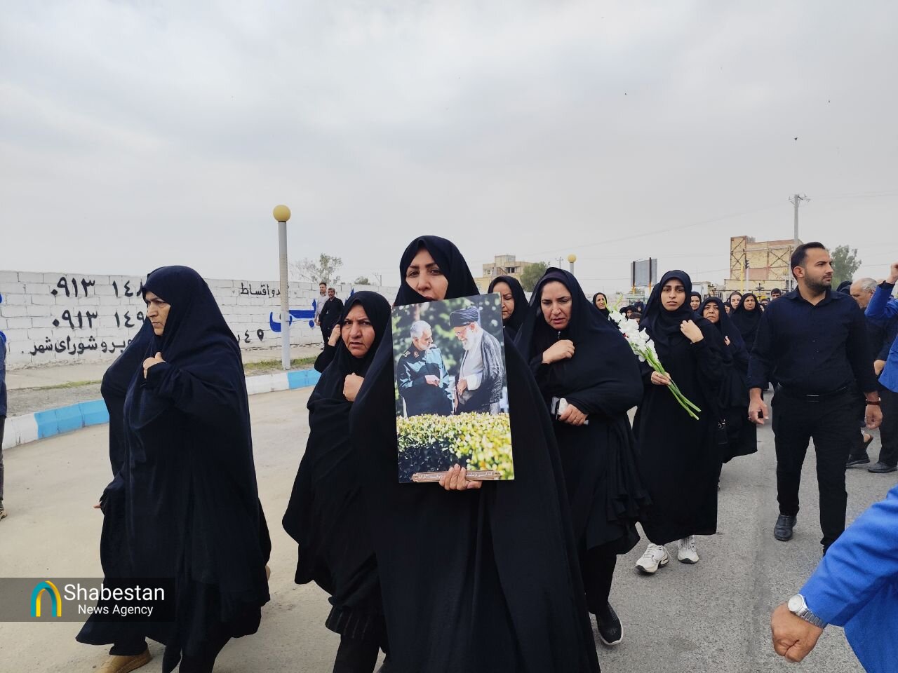 پیکر مطهر شهیده فاطمه طاهری فرد مدیر دبستان دخترانه میناب که چند روز قبل در حمله ددمنشانه آمریکا و اسرائیل به دبستان شجره طیبه به شهادت رسیده بود امروز بر دستان مردم قدرشناس از میدان سپهبد شهید حاج قاسم سلیمانی تا گلزار شهدای شهر جیرفت تشییع شد.