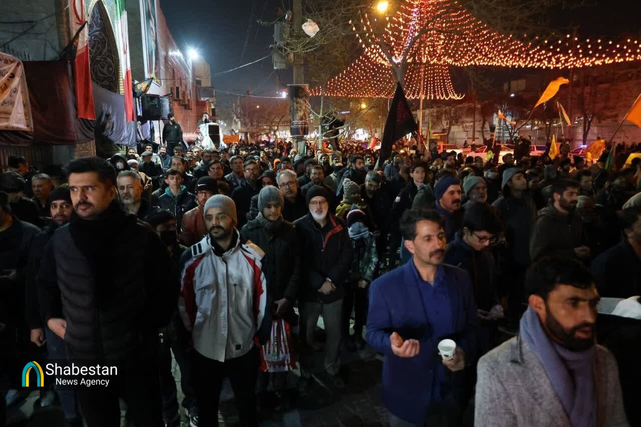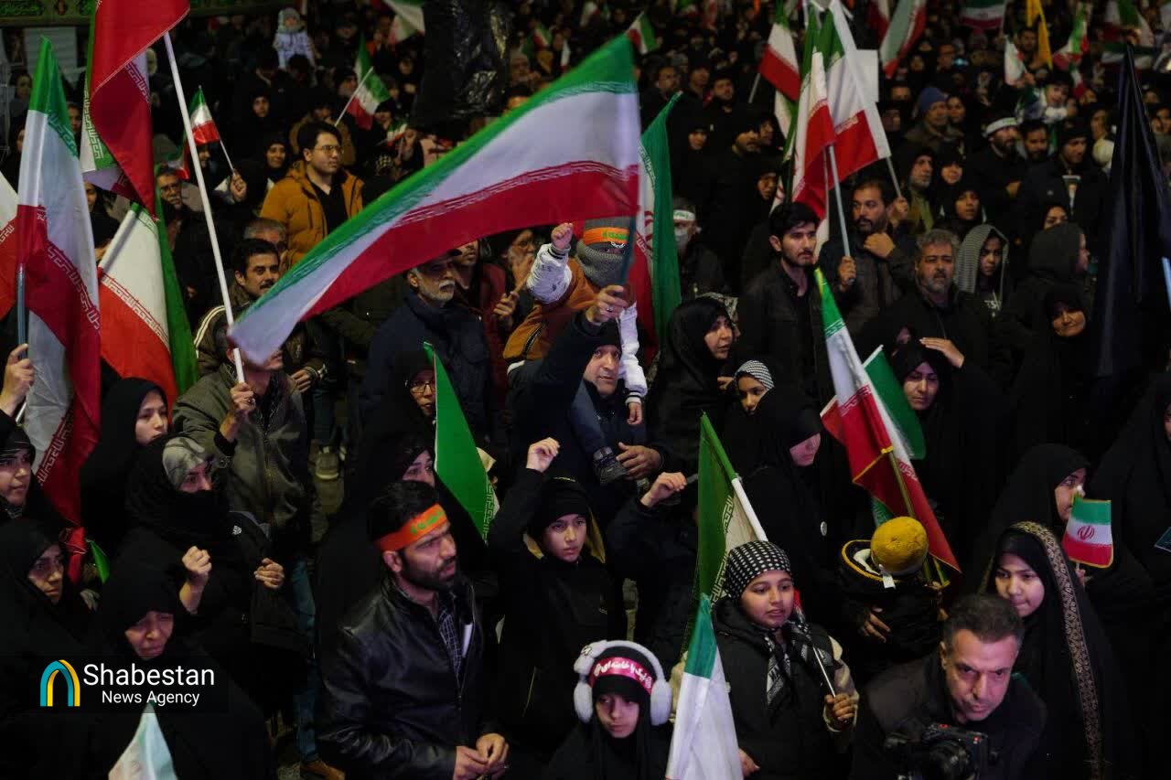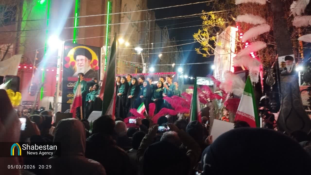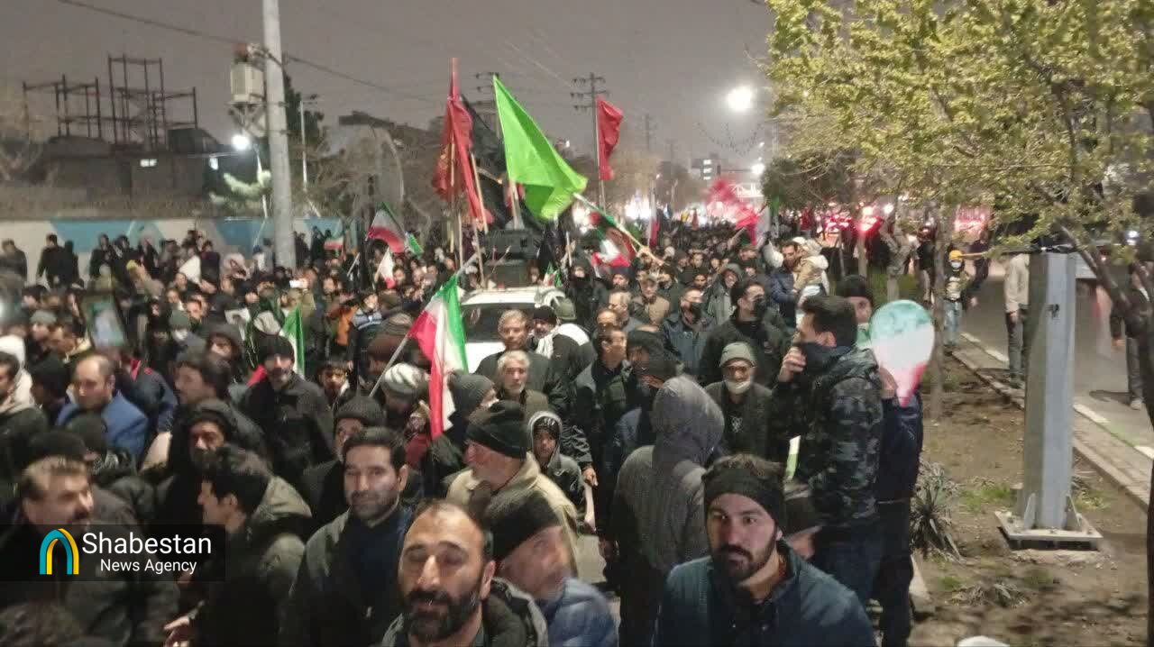مردم مشهدالرضا علیهالسلام شامگاه پنجشنبه ۱۴ اسفند ماه و برای پنجمین شب به خیابان ها آمدند. بچه های مسجدی هم دوشادوش مردم در این حماسه بودند وبا اجرای سرود در تجمع ها و برپایی ایستگاه های صلواتی و شعارنویسی و راه اندازی کاروان های خودرویی و موتوری به جهانیان نشان دادند که همچنان حامی نیروهای مسلح و انقلاب هستند و خونخواه رهبر شهیدشان. از طلاب و طبس یک پتجتن در حاشیه شهر تا وکیل آباد و آزادشهر و بولوار سجاد. از قاسم آباد تا مصطفی خمینی و شهرک رجایی. شهرهای مختلف خراسان نیز این شب ها حماسه افریدند. از نیشابور و تربت حیدریه و تایباد و قوچان تا چناران و خواف و سبزوار.