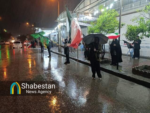 حتی وزش باد و بارش رحمت الهی نتوانست اراده پولادین اعضای کانون فرهنگیهنری تخصصی خواهران بنت الهدی و سیدالشهداء(ع) در فسا را سست کند؛ آنان در زیر بارش باران، بر پیمان خود با رهبر شهید استوار ماندند.