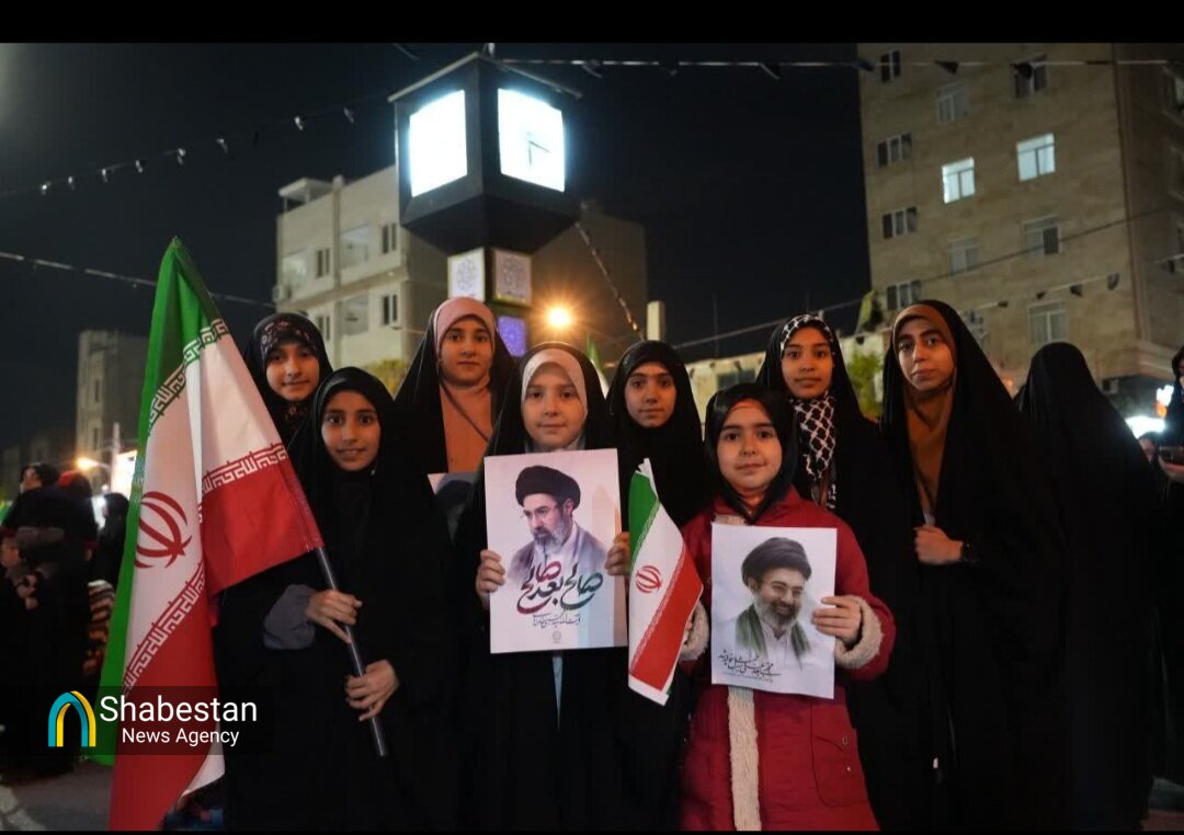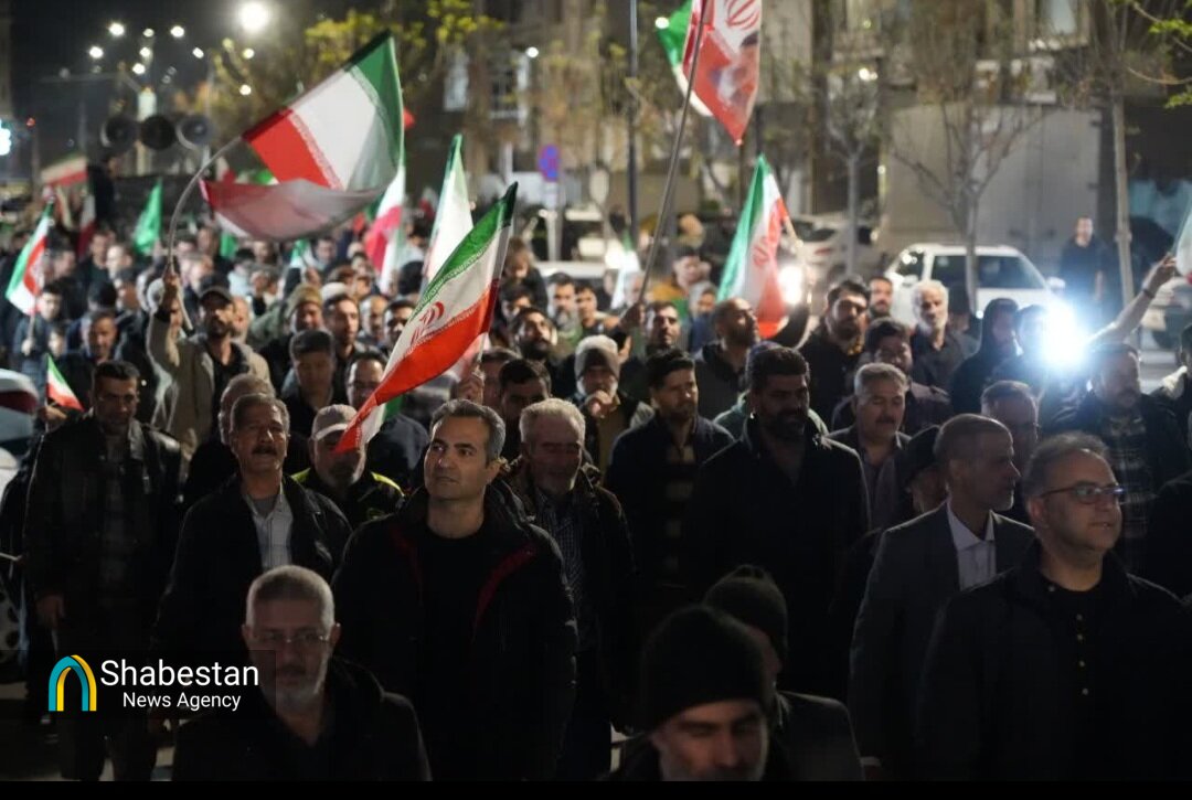 اهالی میدان نبوت در خون خواهی شهادت رهبر انقلاب و سربازان وطن و بیعت با سومین رهبر با میدان داری مسجد ولی عصر(عج) راهپیمایی کردند.