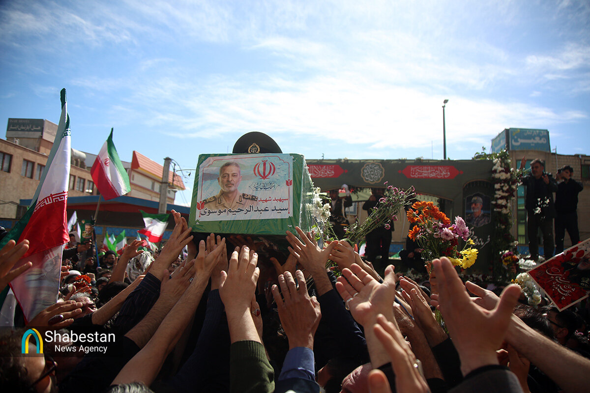 پیکر مطهر سپهبد شهید سید عبدالرحیم موسوی رئیس شهید ستادکل نیروهای مسلح ایران پس از نماز جمعه قم به روی دستان مردم تا حرم مطهر حضرت فاطمه معصومه سلاماللهعلیها تشییع و به خاک سپرده شد.