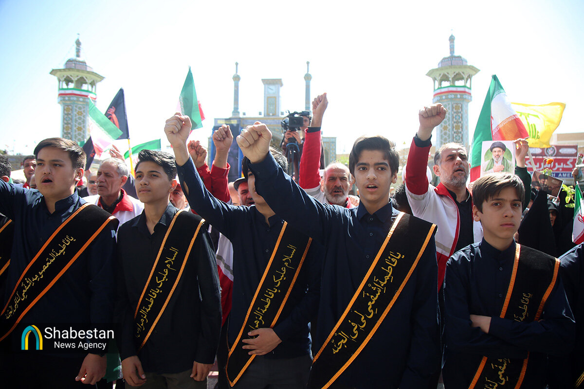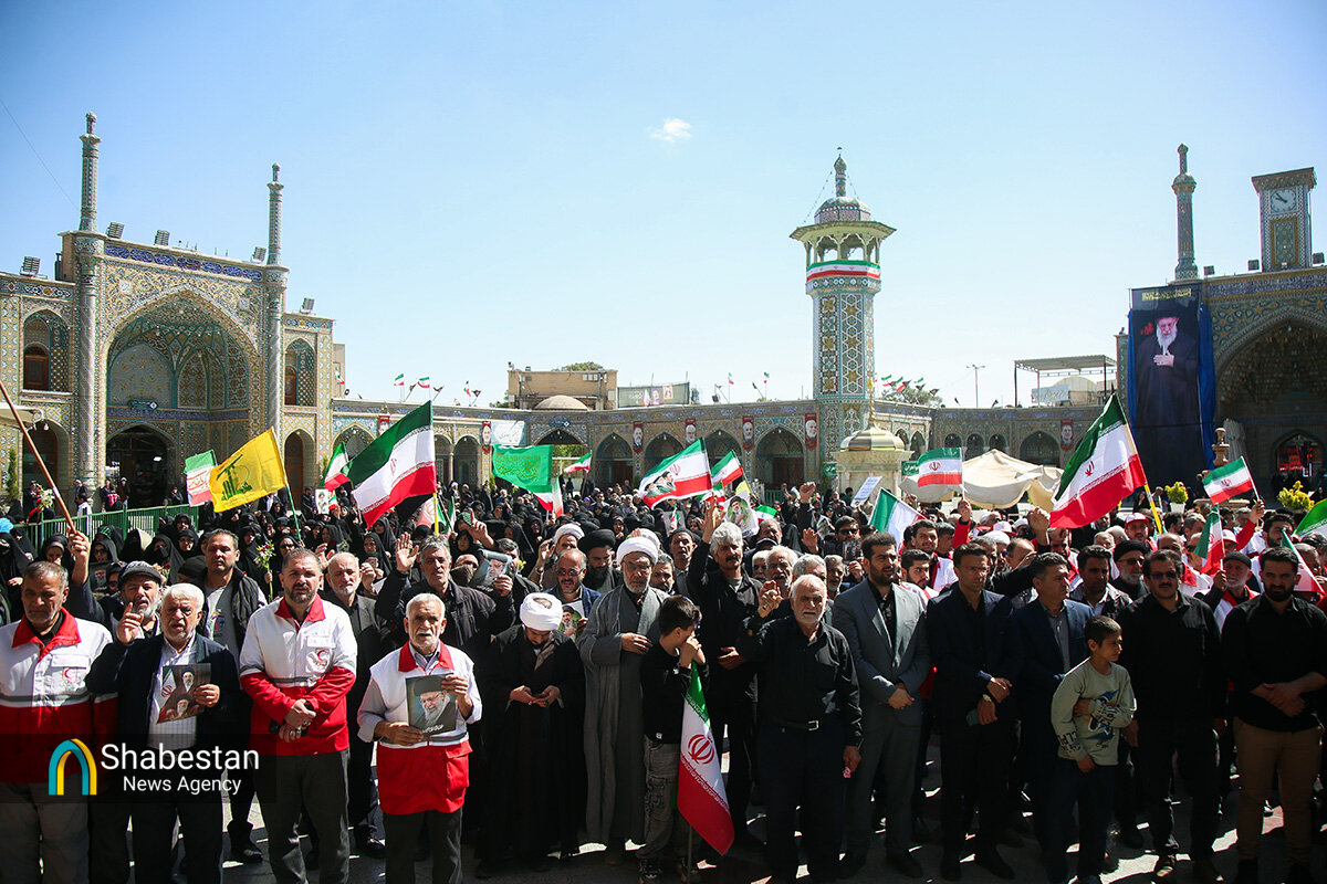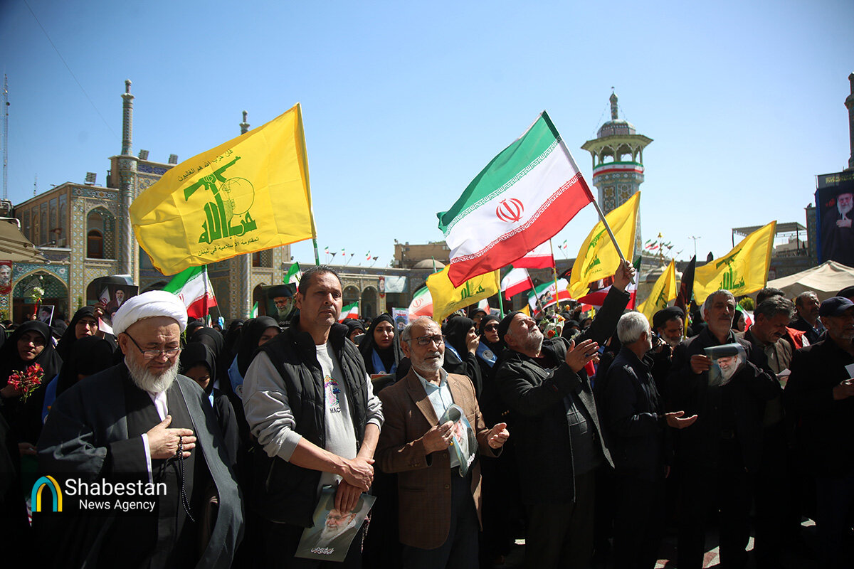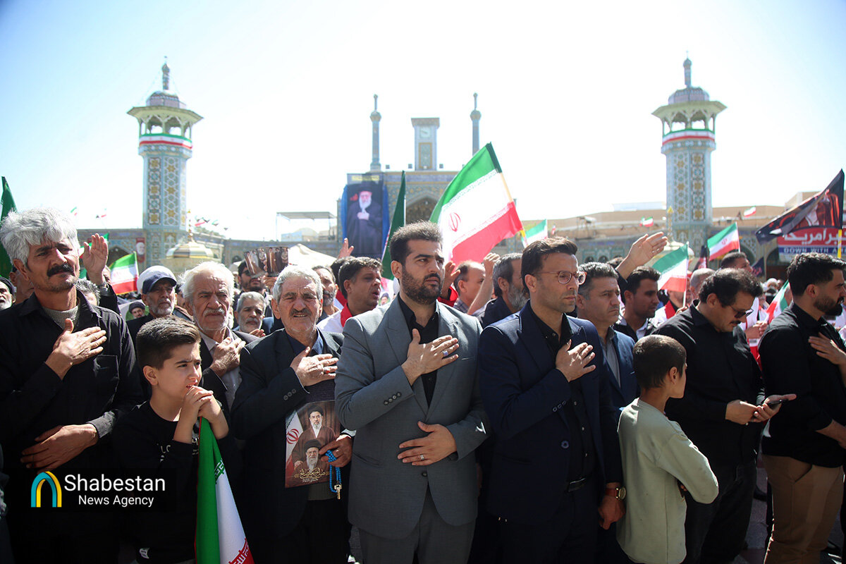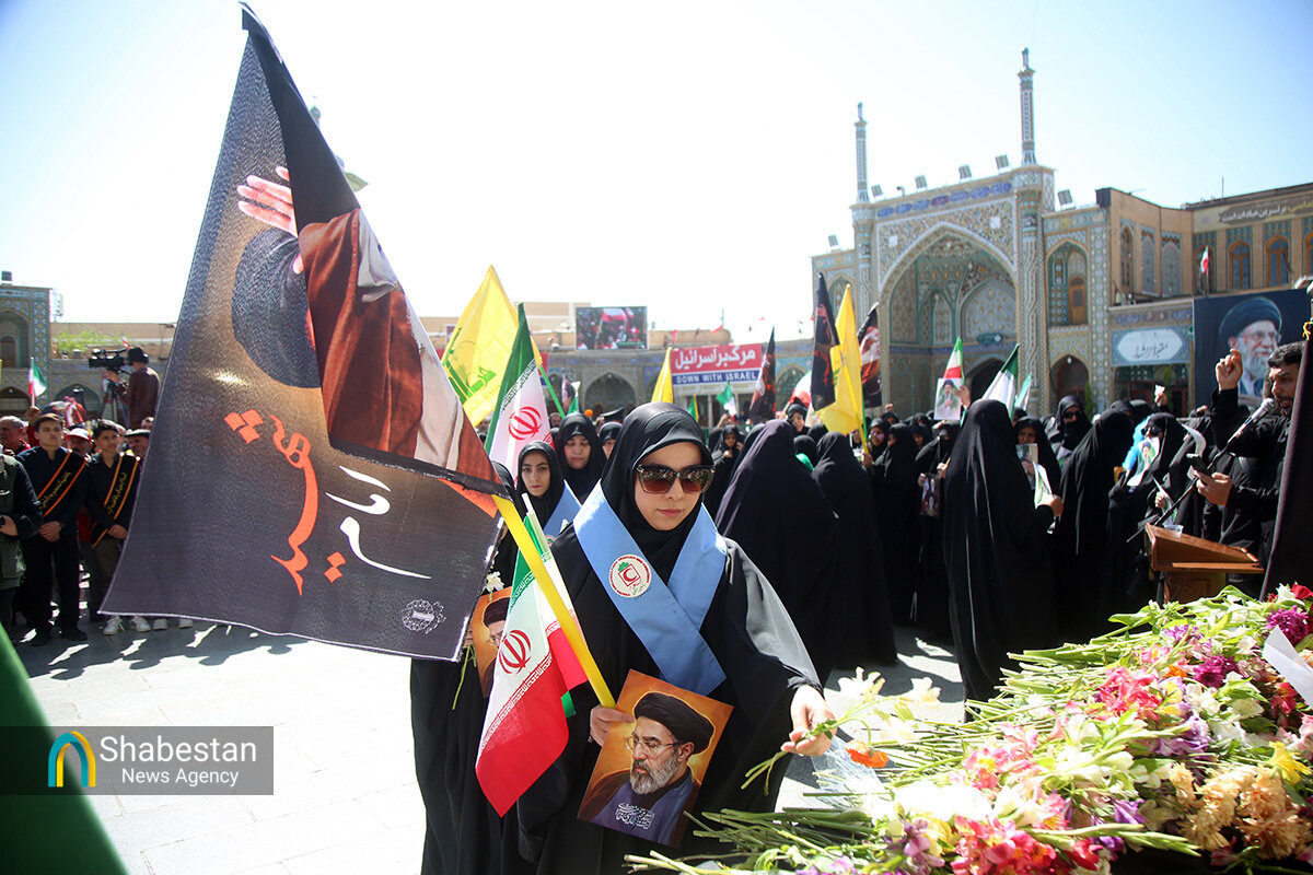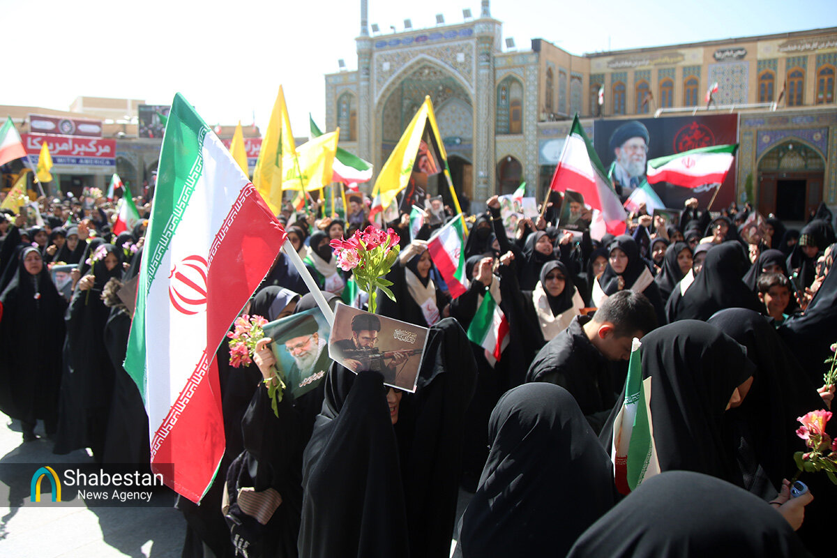 آیین ادای احترام و اهدای گل به یادمان شهید آیت الله امام سید علی خامنه ای (قدس سره) به مناسبت چهلمین روز شهادت رهبر شهید انقلاب امروز با حضور پرشور خادمان حرم مطهر بانوی کرامت و اقشار مختلف مردم در صحن امام رضا علیه السلام حرم حضرت فاطمه معصومه سلام الله علیها برگزار شد.