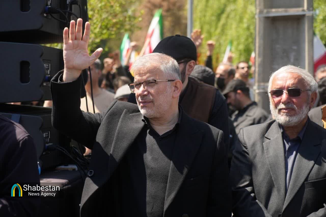 مراسم بزرگداشت چهلمین روز شهادت جانسوز رهبر عظیمالشان انقلاب، شهید حضرت آیتالله العظمی سید علی خامنهای (ره)، صبح امروز با حضور انبوه و پرشور مردم ولایتمدار و عزادار استان البرز در بلوار جمهوری اسلامی کرج برگزار شد.