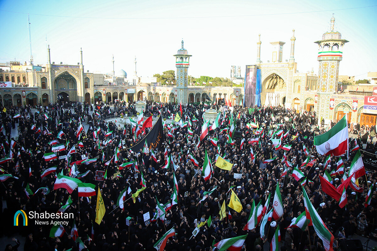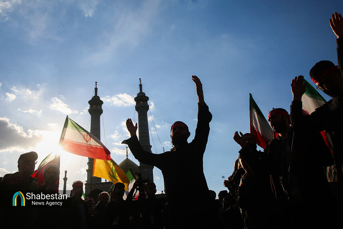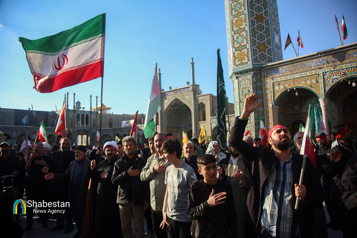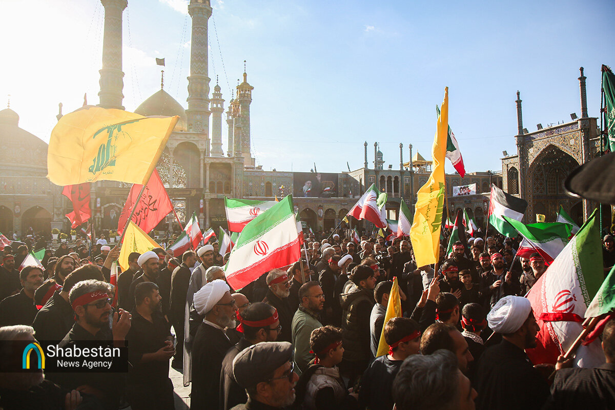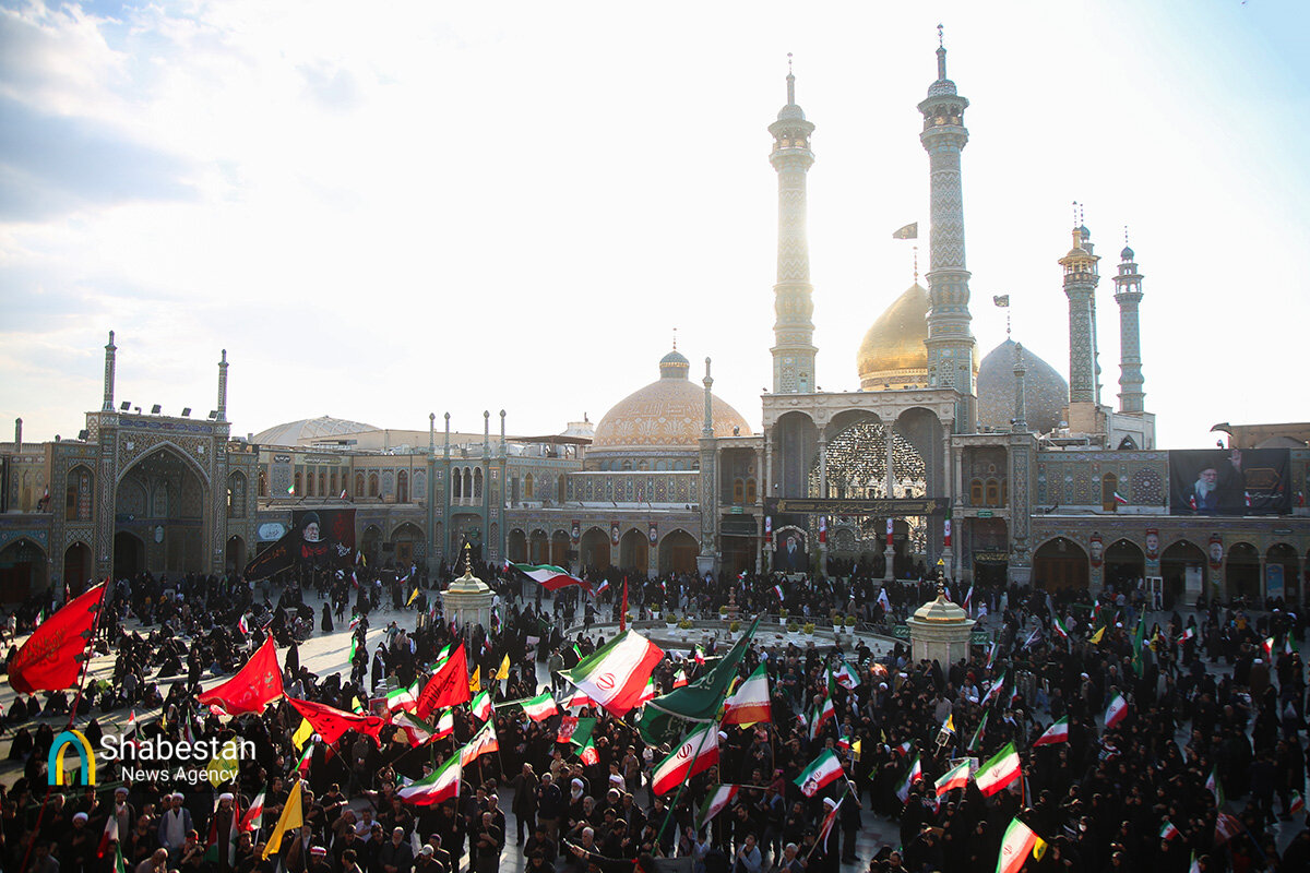 هیئات مذهبی قم عصر امروز به مناسبت اربعین رهبر شهید انقلاب حضرت آیتالله سید علی خامنهای با اجتماع در صحن امام رضا علیه السلام حرم مطهر بانوی کرامت به عزاداری و عرض ارادت پرداختند.