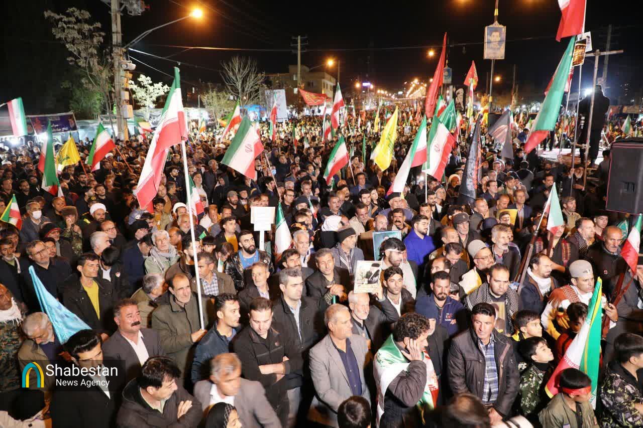 مردم یاسوج در شب چهلم ایستادگی پای کار انقلاب و ایران اسلامی همچنان استوار و پرصلابت در میدان حمایت از رزمندگان انقلاب و بیعت دوباره با رهبر معظم انقلاب اسلامی حضرت آیت الله سید مجتبی حسینی خامنه ای، جمعه شب ۲۰ فروردین در خیابان جمهوری اسلامی این شهر حضور پیدا کردند.
