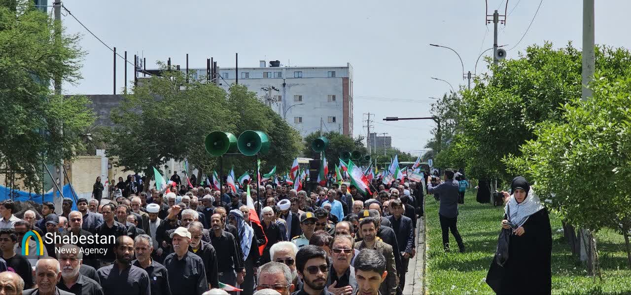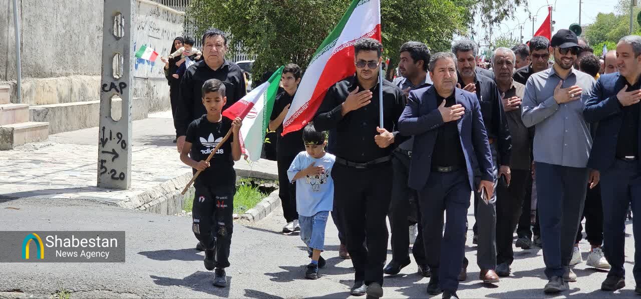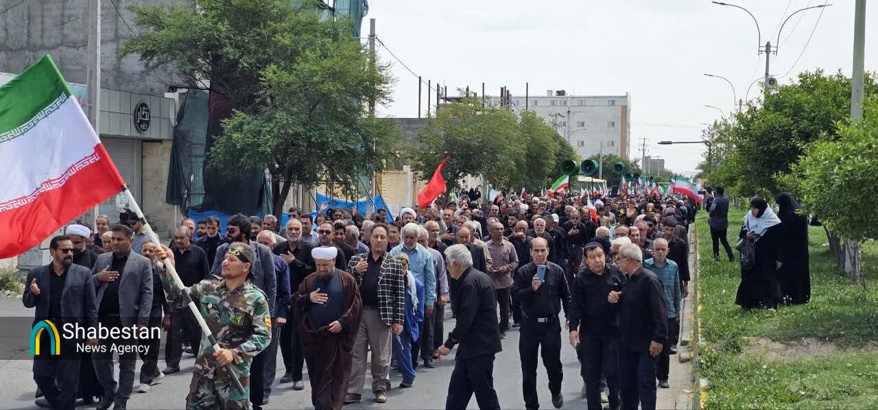 امروز جمعه ( ۲۱ فروردین ماه) مردم جیرفت به مناسبت بزرگداشت چهلمین روز شهادت رهبر معظم انقلاب اسلامی مسیر میدان سپهبد شهید حاج قاسم سلیمانی تا مصلی پیامبر اعظم (ص) را با پای پیاده طی کردند.