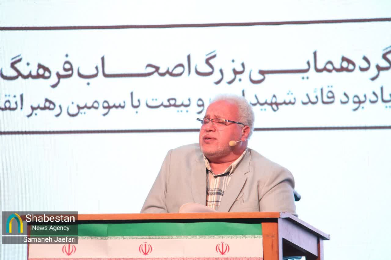 گردهمایی بزرگ اصحاب فرهنگ، هنر، رسانه و قرآن خراسان رضوی، یادبود قائد شهید امت(ره) و بیعت با رهبر انقلاب، آیتالله سید مجتبی خامنهای(حفظه الله) همراه با تقدیر و تجلیل از خانواده محترم شهید محمد صادق نظافتی از شهدای کانونهای فرهنگی هنری مساجد این استان، با حضور بیش از ۳۰۰ نفر از اهالی فرهنگ و هنر و رسانه مشهد شامگاه یکشنبه ۳۰ فروردین ماه در سالن تئاتر شهر مشهد برگزار شد.